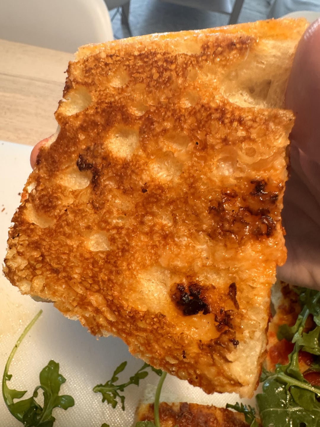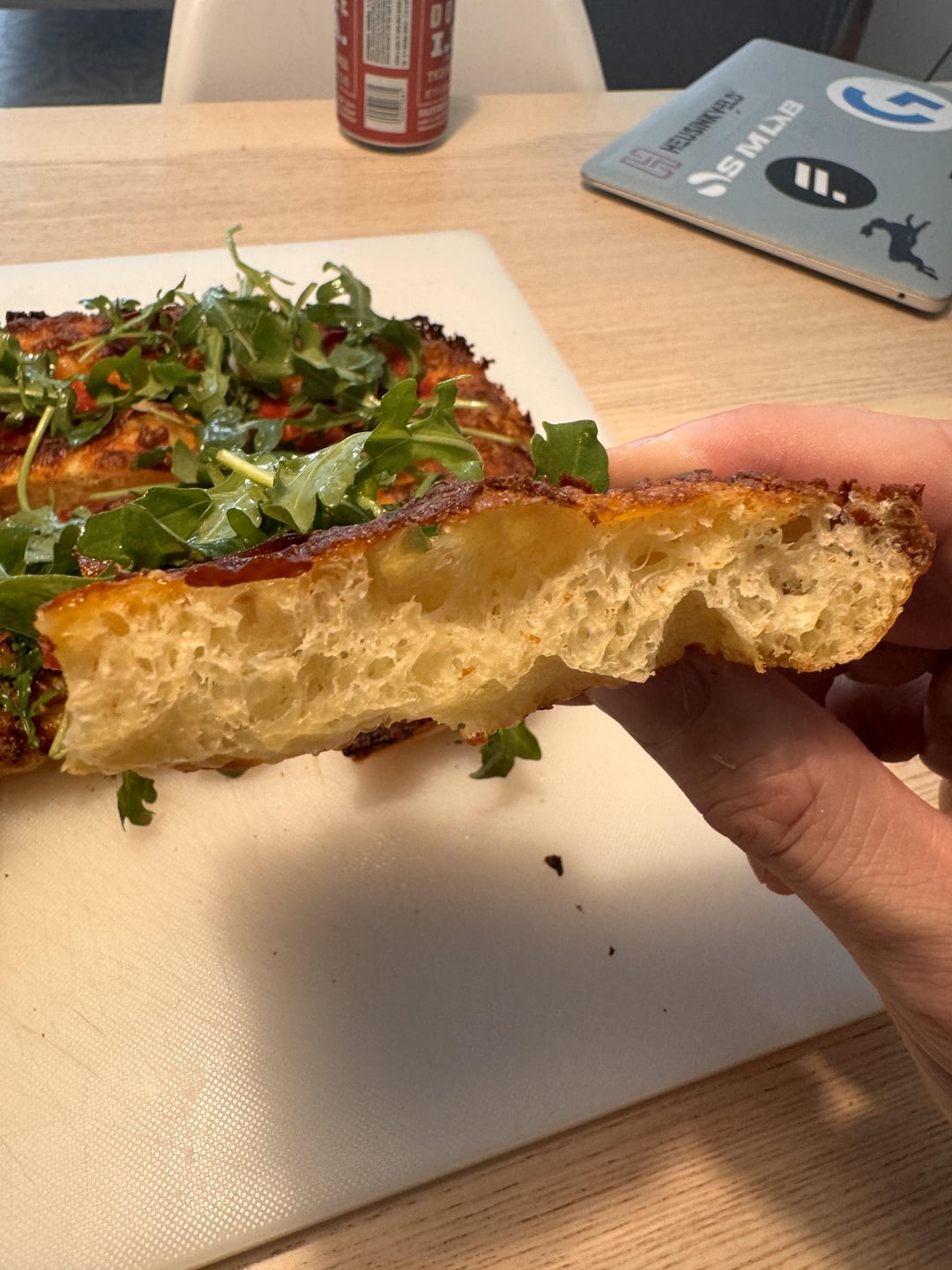 But this was just a test – I didn’t know if it would be any good – but it might be my signature pizza, a new house favorite, I threw a bunch of lightly dressed arugula on top and it was absolute 🔥
