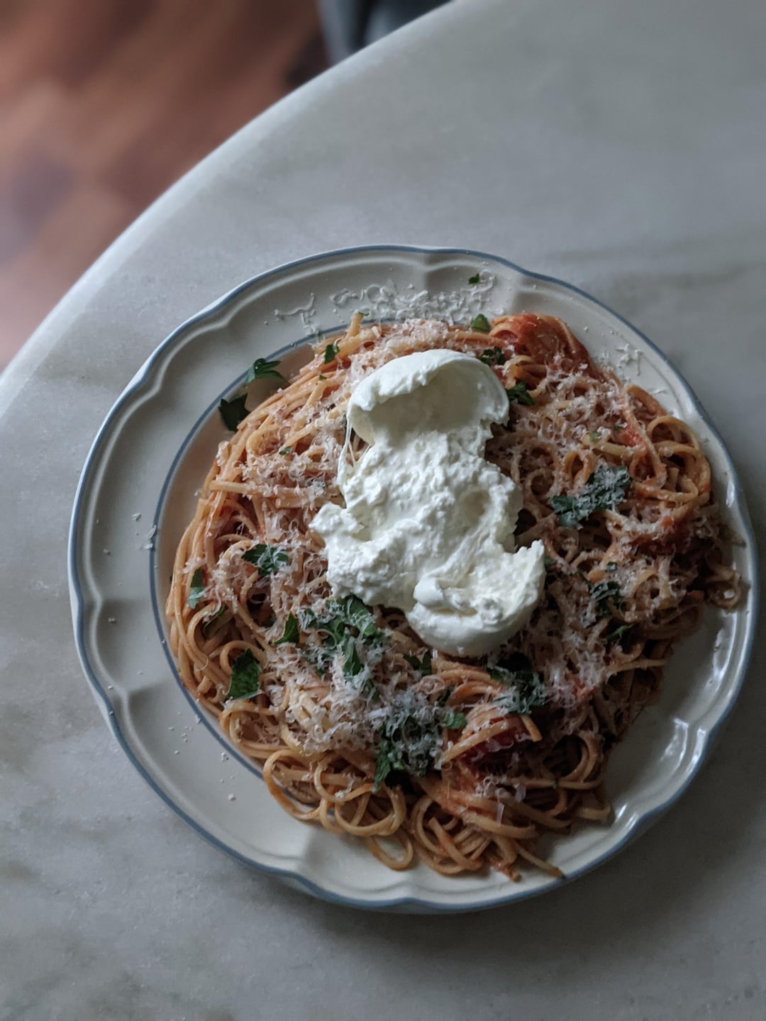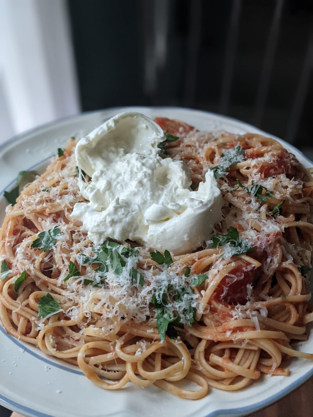 One of my husband's best pasta dishes; Angel hair pasta with marinara sauce, fresh parsley, Parmesan, and Burrata. Couldn't help but clean up the entire plate and slipped into a food coma immediately after. by Pristine_Toe4388 Homemade DishPastaWrite A CommentYou must be logged in to post a comment.