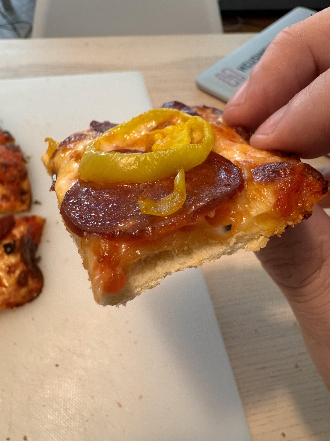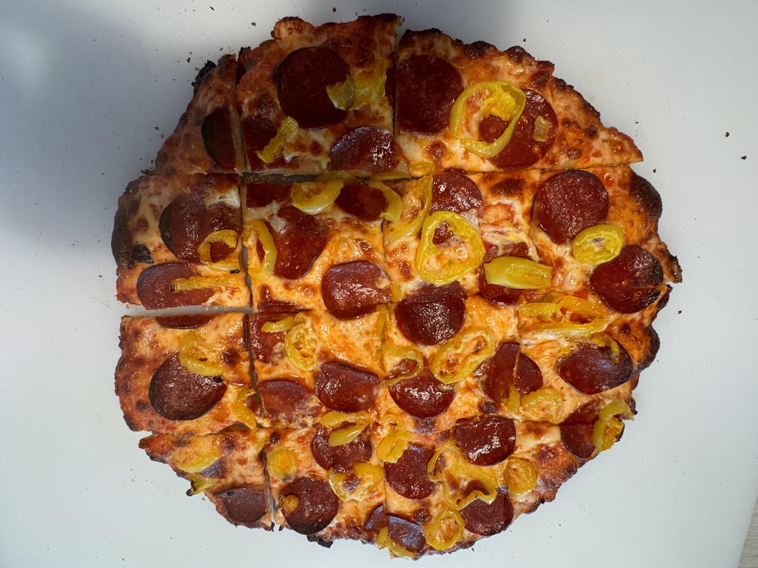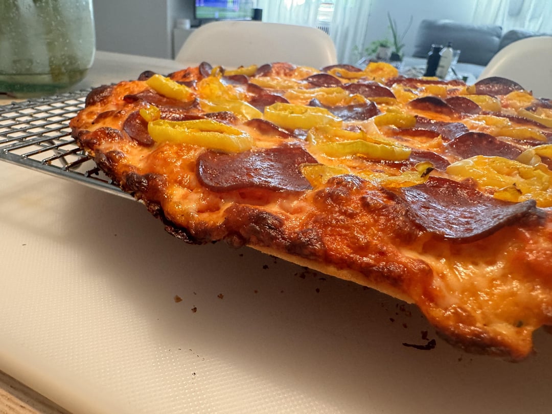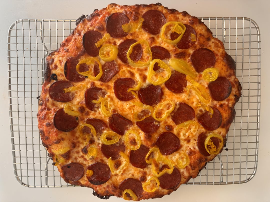 Ok so I have been only making these tavern style crusts for a few weeks but I am already obsessed. I preferred the Italian sausage to this pepperoni + banana pepper combo but this was still💥 with the crust being the standout