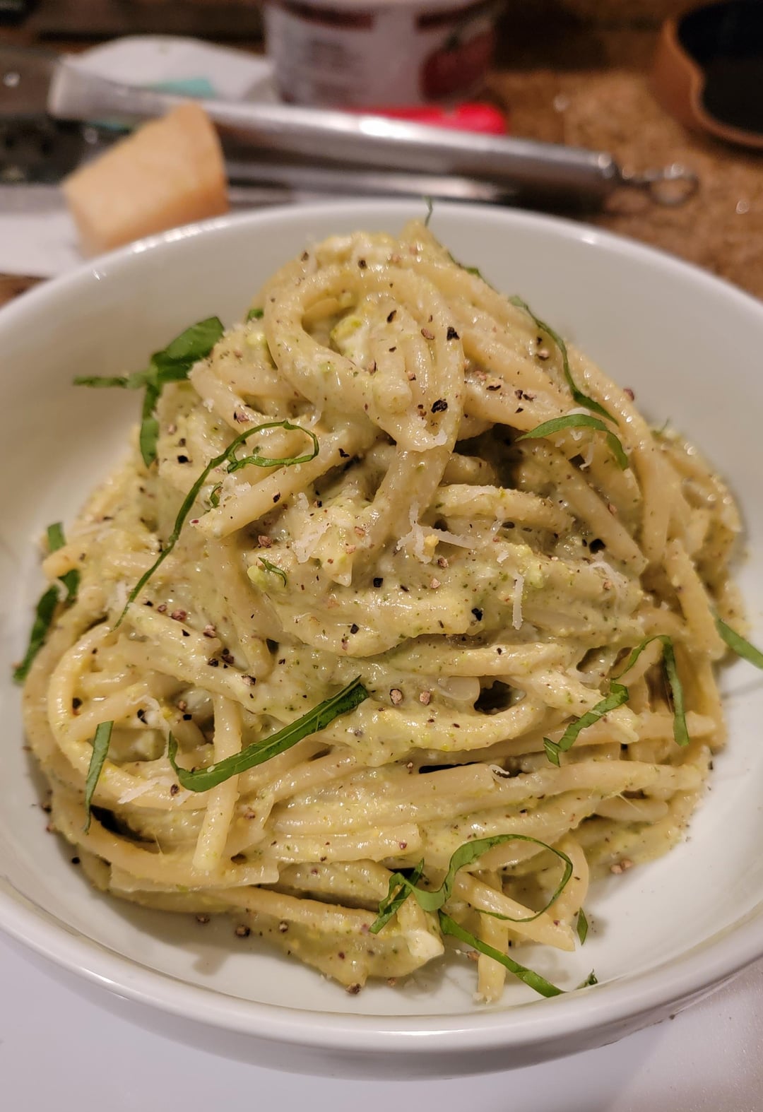 I Cooked Bucatini Pasta with Pistachio Pesto and Burrata