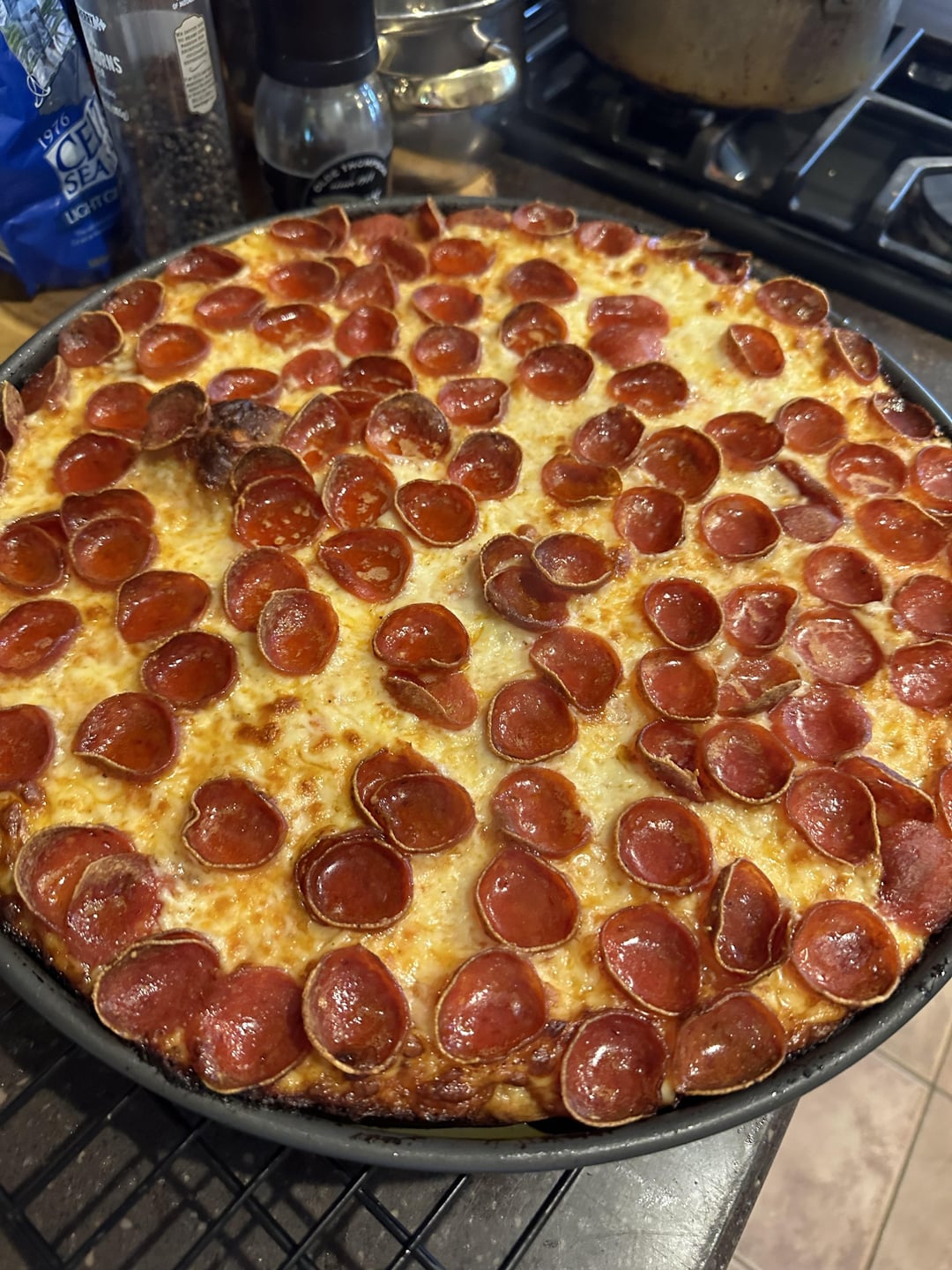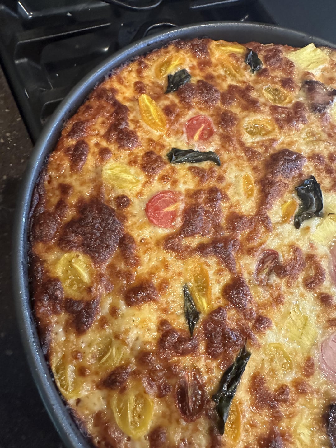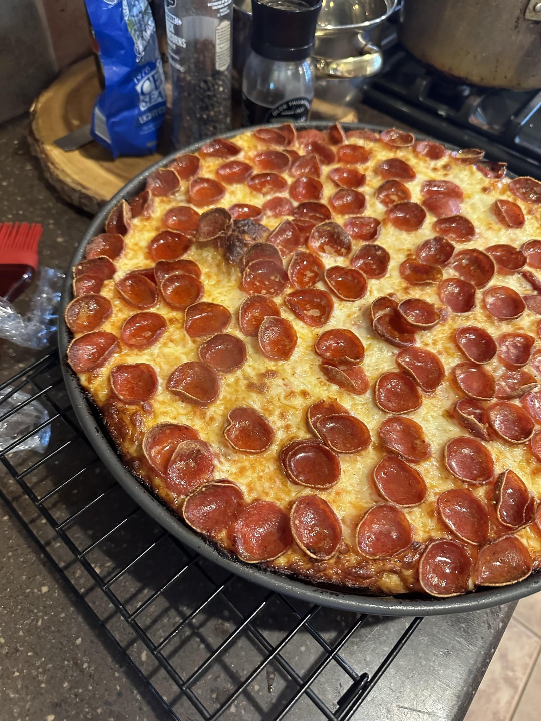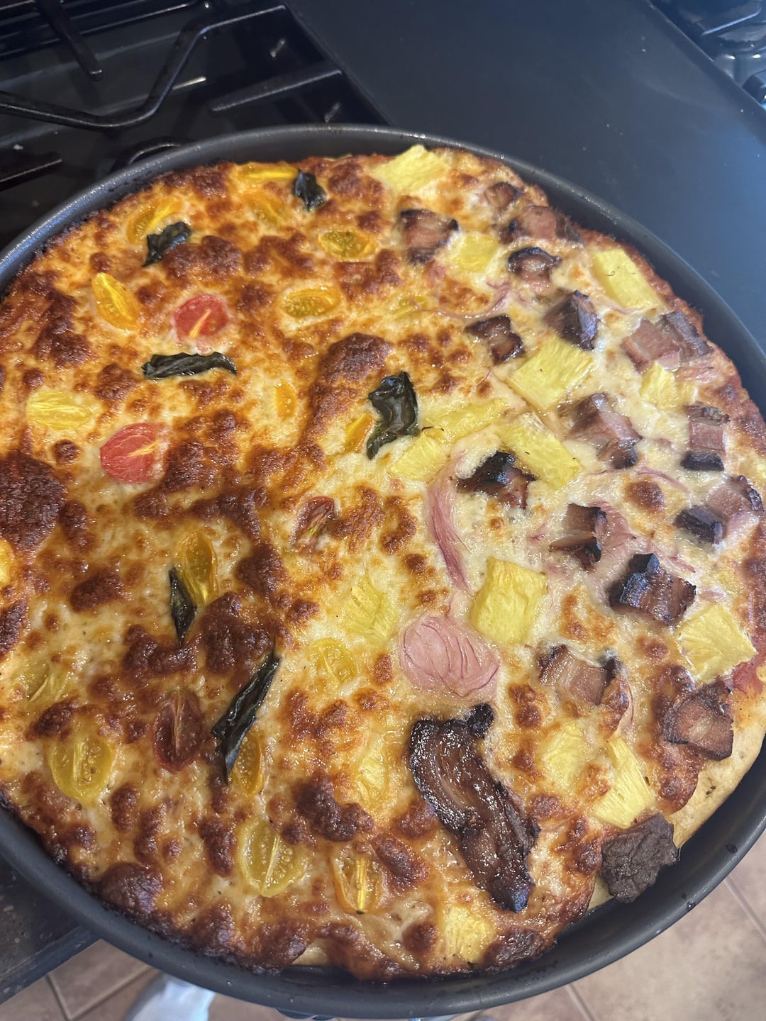 Detroit dough in a 14 inch round pan. Tomatoes and basil from the garden. Pork belly I smoked myself the day before.by Stonedknobcooks Looking for FeedbackpizzaWrite A CommentYou must be logged in to post a comment.