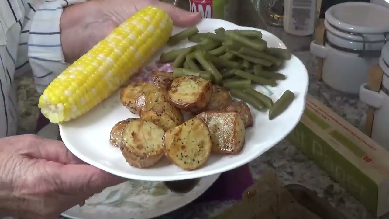 good afternoon this is Kay with around the house with Kay and Tom going to cook some potatoes we’re going to do it real quick got a thunderstorm coming up I think so but I wanted to get these potatoes cooked today so all I’m going to do is take some parchment paper pan with it a little bit I’m going to cook these in my n because it’s so much quicker to cook and we’re just going to wash them and dice them up just a little bit I’m going today I’m just going to put some Italian seasoning dressing on it little butter on top of it and I’m going to spray a little olive oil on top just to give it just a little oil on it quick and easy today all I’m going to do is I’m washing them a little bit and I always look over my potatoes and make sure there’s no bad spots and I’m just going to cut them in just any sort of in piece I got these a couple of weeks ago and I kept thinking I was going to make a roast but I never have so we’re just going to get get cook them today and you really don’t even have to cut them up at all Saturday afternoon just getting something done all I’m going to do and this is just Italian seasoning we’re just going to sprinkle some on it and I’m going to just take some butter put a few pats on top of it see I’ve got some of that seasoning on my gloves and we’re just going to this was just a spur of the- moment thing that I’ve decided to do and sometimes spur of the moment things turn out so much better when that gets to Melting I will sort of stir up my potatoes and I’m just going to this is olive oil spray by Pam you use any kind of spray you want to but I just need them need a little something on them I’m going to put these in the Ninja and I’m just going to put them under air fry and cook them for about let’s say 30 minutes I have it on 30 minutes at 375 and I have it on air for and as you can hear it is now preheating just as soon as it gets to 375 we’re going to stick our potatoes in there okay I have stirred them up just a little try to get them coated in that what little butter I put on there and the olive oil and we’re going to finish letting them cook and they have 6 minutes and 13 seconds and we’ll come back and check them again and take them out I think cuz I think they’re done well I have taken a toothpick and stuck in them and they’re definitely done so I’m going to take them and put them over here on a plate and this was nothing the world but some potatoes I cut them in half I put some seasoning on it Italian seasoning some butter and I sprayed it down with olive oil and this I put it on parchment paper put it in my nin XL fryer and I cooked it for 30 minutes when you’re by yourself it’s amazing what you will eat or what you’ll fix for your dinner or whatever it’s never sometimes not a whole lot so tonight I am going to have some of these potatoes I know to a lot of you this will seem like a really weird dinner but this is some air fried potatoes stream beans and a ear corn and that is my dinner for tonight around the house with Kay and Tom I have a ear of corn some stream beans and my potatoes and they really turned out good Please Subscribe give me your comments and come back to see me I know this is a really short video but not much you can do with potatoes to make a long video but they sure was good and come back to see me have a fantastic night and I will catch you next time
