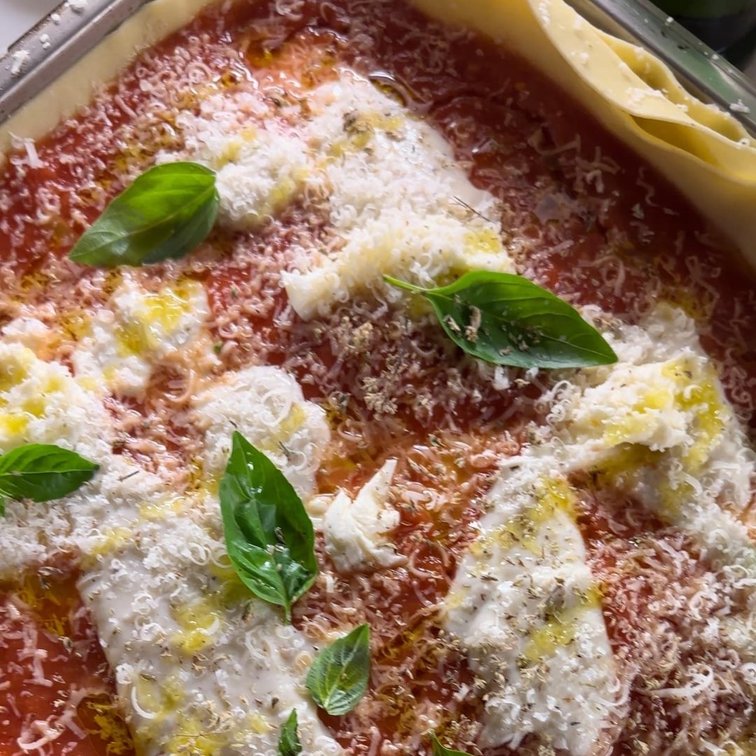 This was made with fresh sheets, 4L tomatoes (home jarred) with three shallots, a béchemal with nutmeg, Parmesean Reggiano, and two balls of fresh mozzarella just ripped into small chunks.