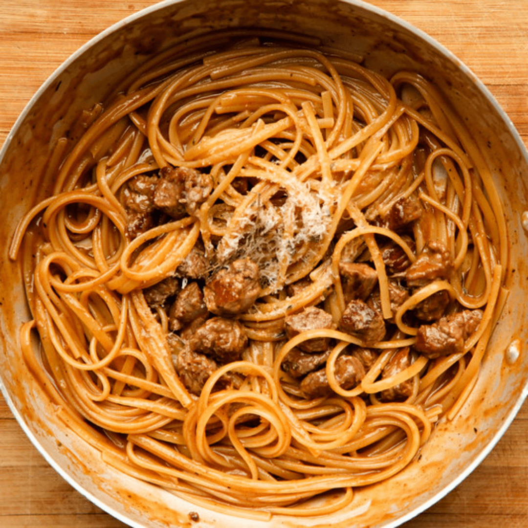 It's hard to give a recipe for this one, as it was basically leftovers from another meal but boy… does this deliver! I'm starting to think the best pasta dishes are the ones based on roasted meats and vegetables. Or maybe there's just something about flavor development in leftovers, I don't know. All I know is that the depth of flavor was out of this world!