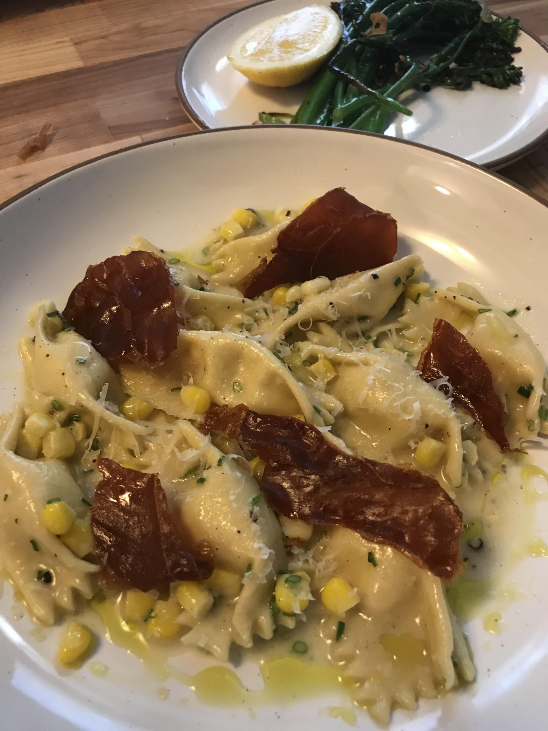 Sweet corn agnolotti, crispy prosciutto, pecorino.by billypootooweet Homemade DishPastaWrite A CommentYou must be logged in to post a comment.