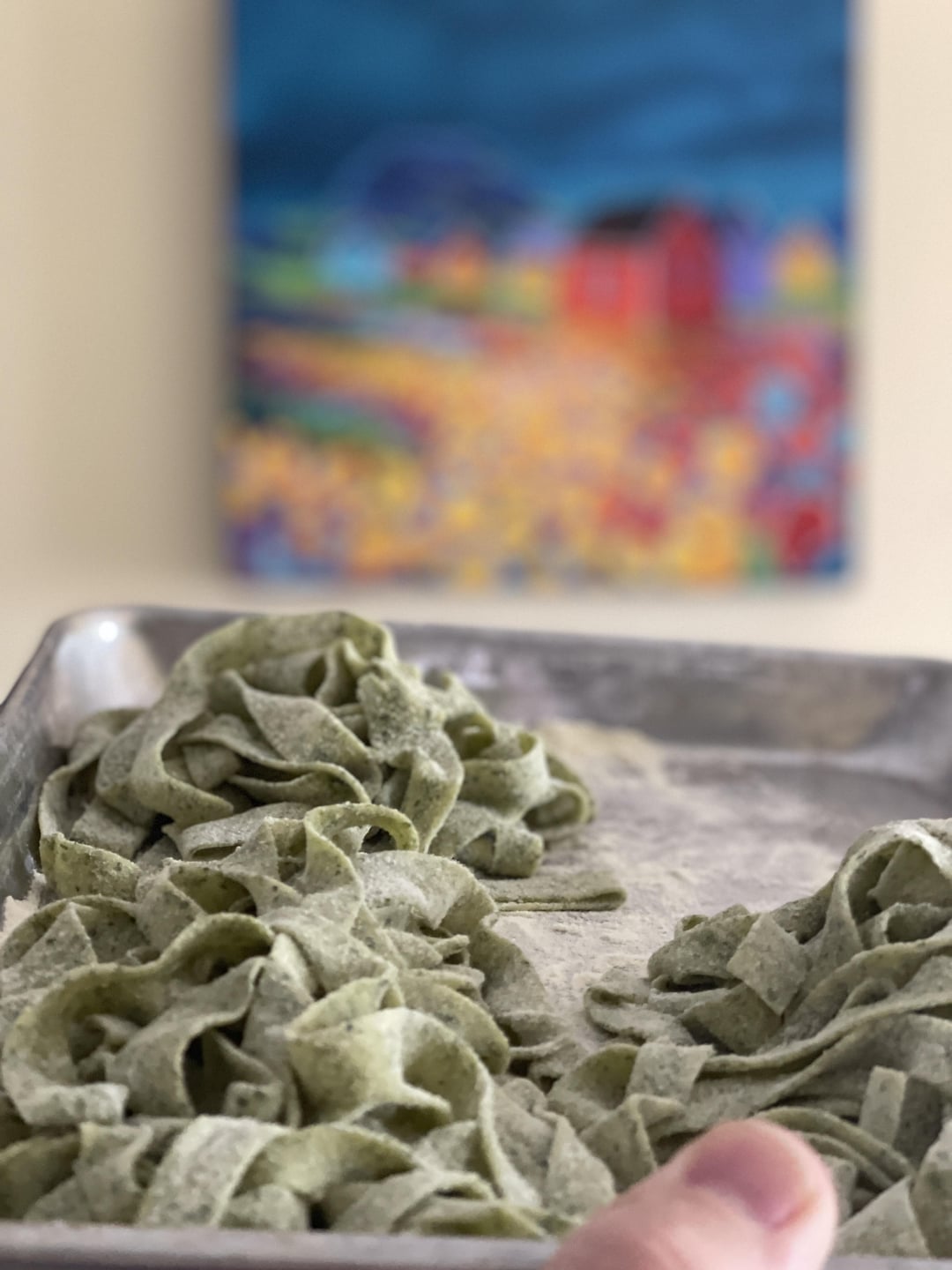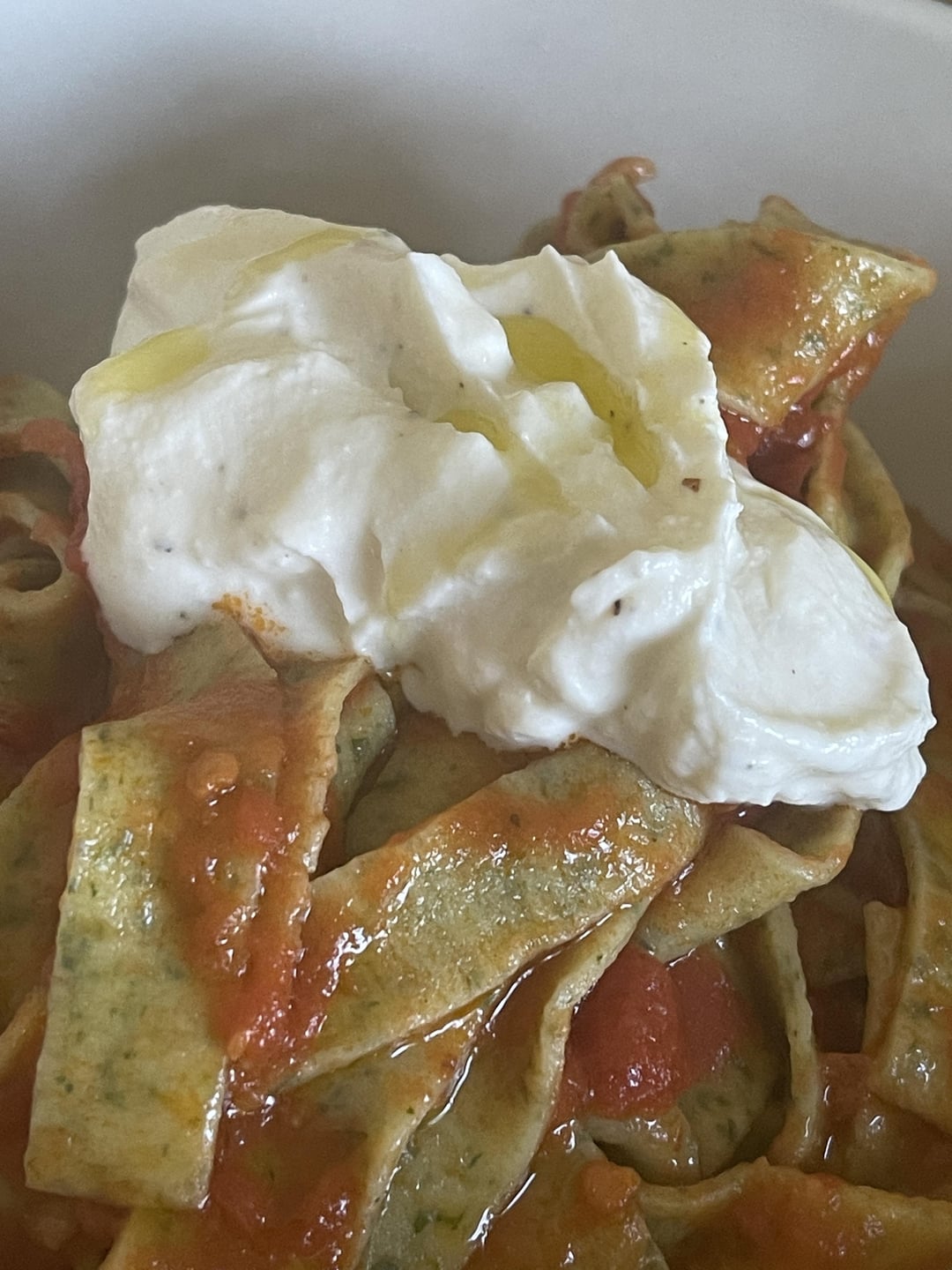 Blanched and blended basil with the eggs before making the dough. Olive oil, garlic and ground skin on tomatoes with a little whipped ricotta. Simple but delicious. by EgbertCanada Pastapasta from scratchWrite A CommentYou must be logged in to post a comment.