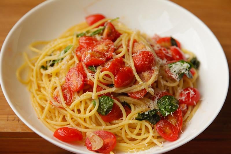 Note: I was in the mood for a fresh and bright tomato flavor, so I left them a little undercooked. I have follwed this recipe to a tee before and can tell you it's really good and yields a creamier sauce… Also, I fried the basil in the olive oil right at the beginning and set it aside!