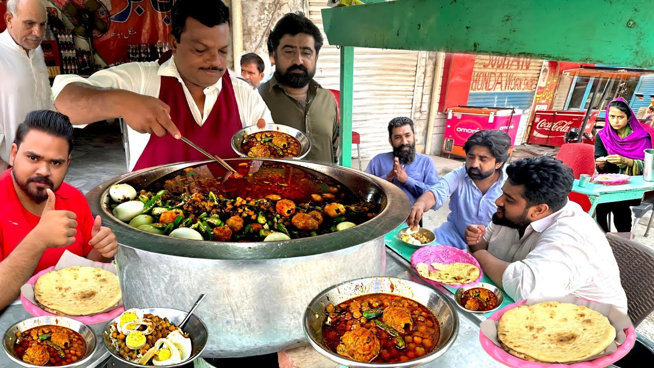 100/-RS PAKISTANI PINJANI DESI NASHTA | STREET FOOD MASTER BABAR CHANA CHOLAY BREAKFAST