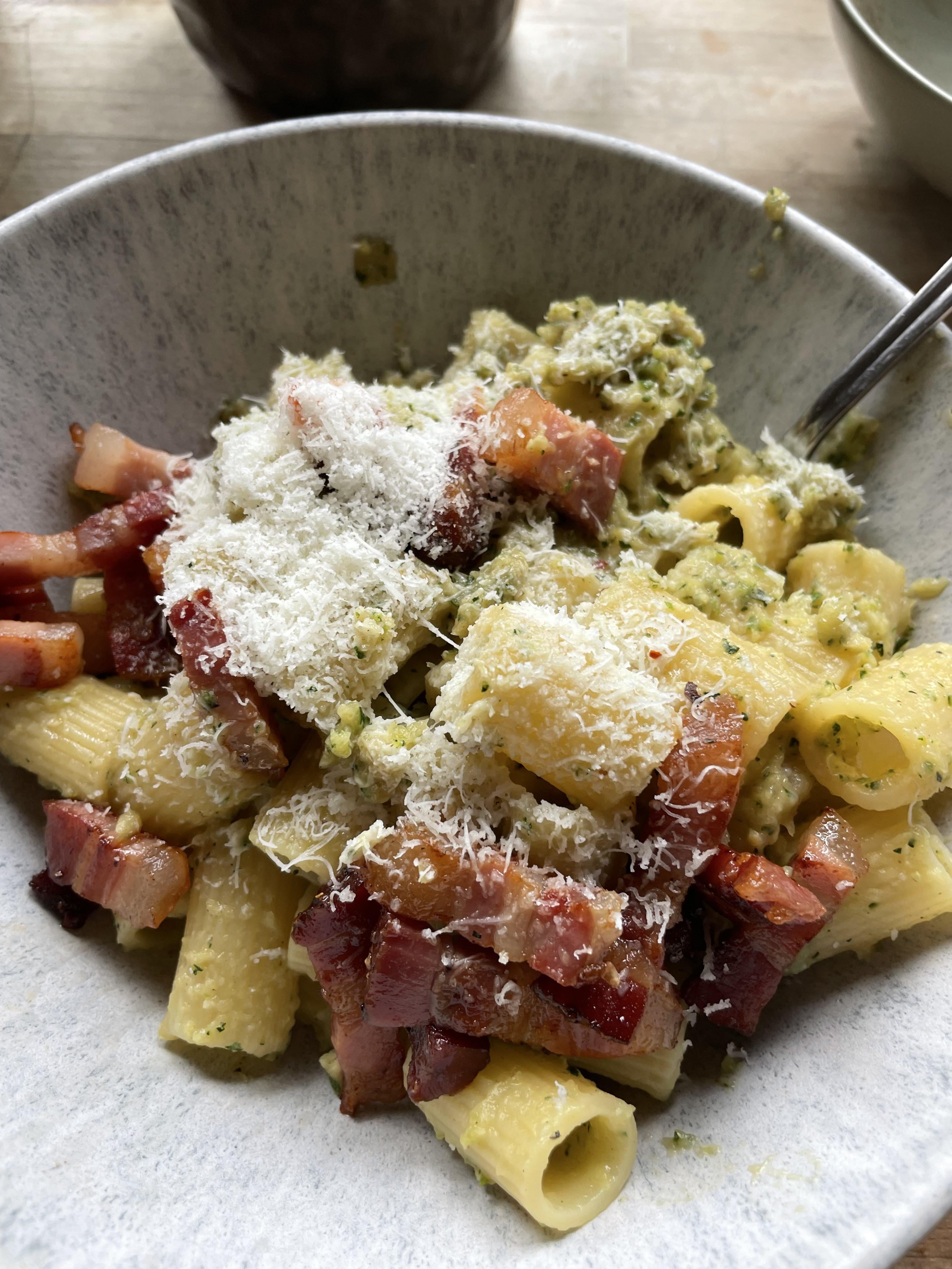 Zucchini pancetta rigatoni