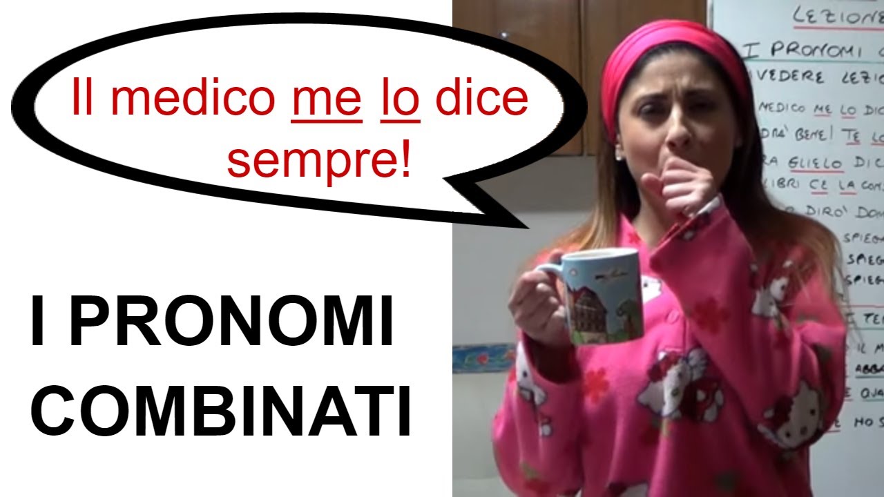 Eccoci alla seconda lezione del livello B1 e la nostra Veronica si è ammalata, febbre..raffreddore..tosse..tanto da dover chiamare la sua collega per farsi sostituire al lavoro. Ma nemmeno questo la fermerà dalle sue lezioni per voi, in questa lezione spiegherà i pronomi combinati e i loro usi. Buona visione.