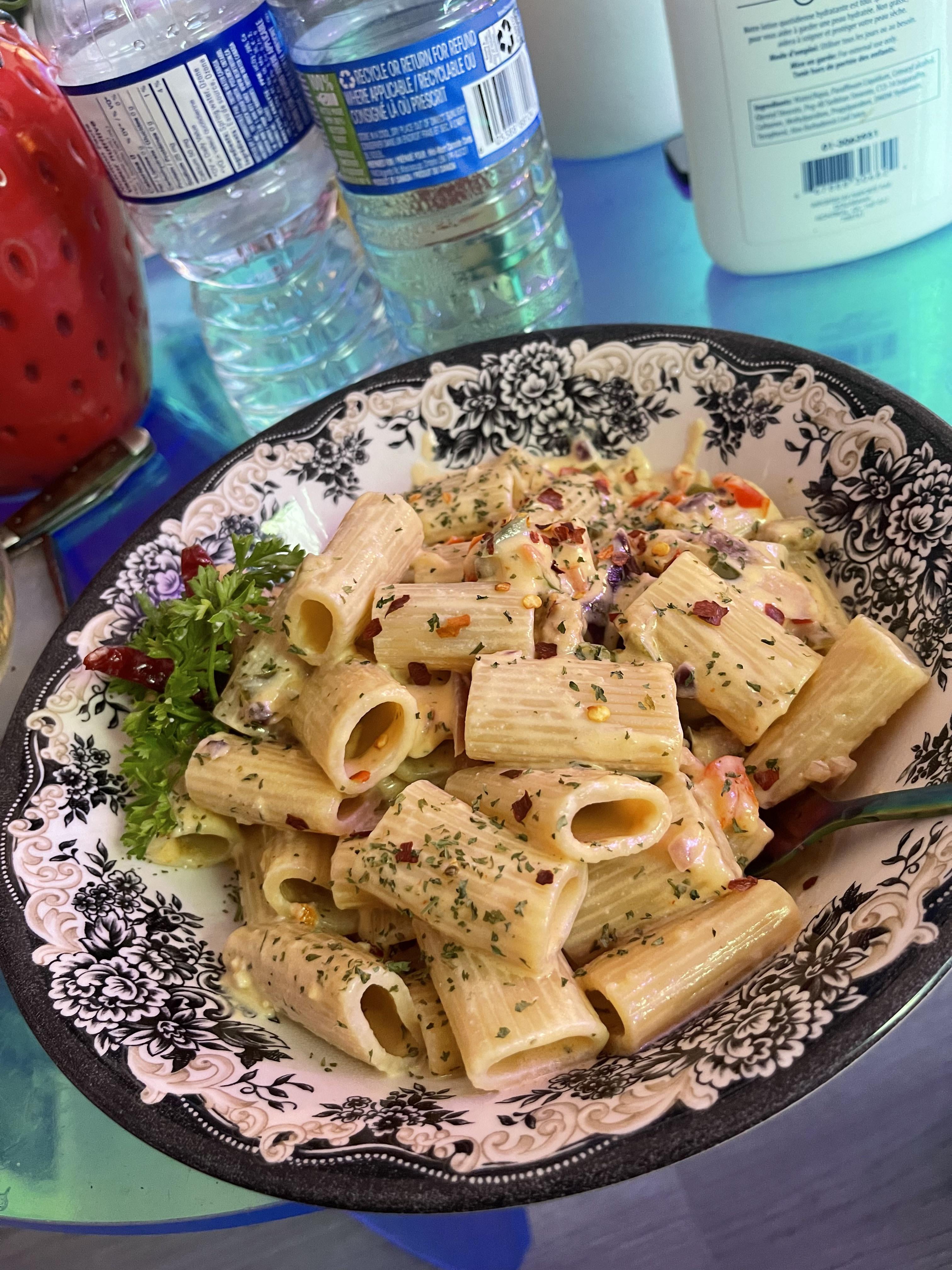 my boyfriend made it! i garlic, onions, hot peppers, bell pepper and beyond sausage in a cream sauce. by sarahvancee Homemade DishPastaWrite A CommentYou must be logged in to post a comment.