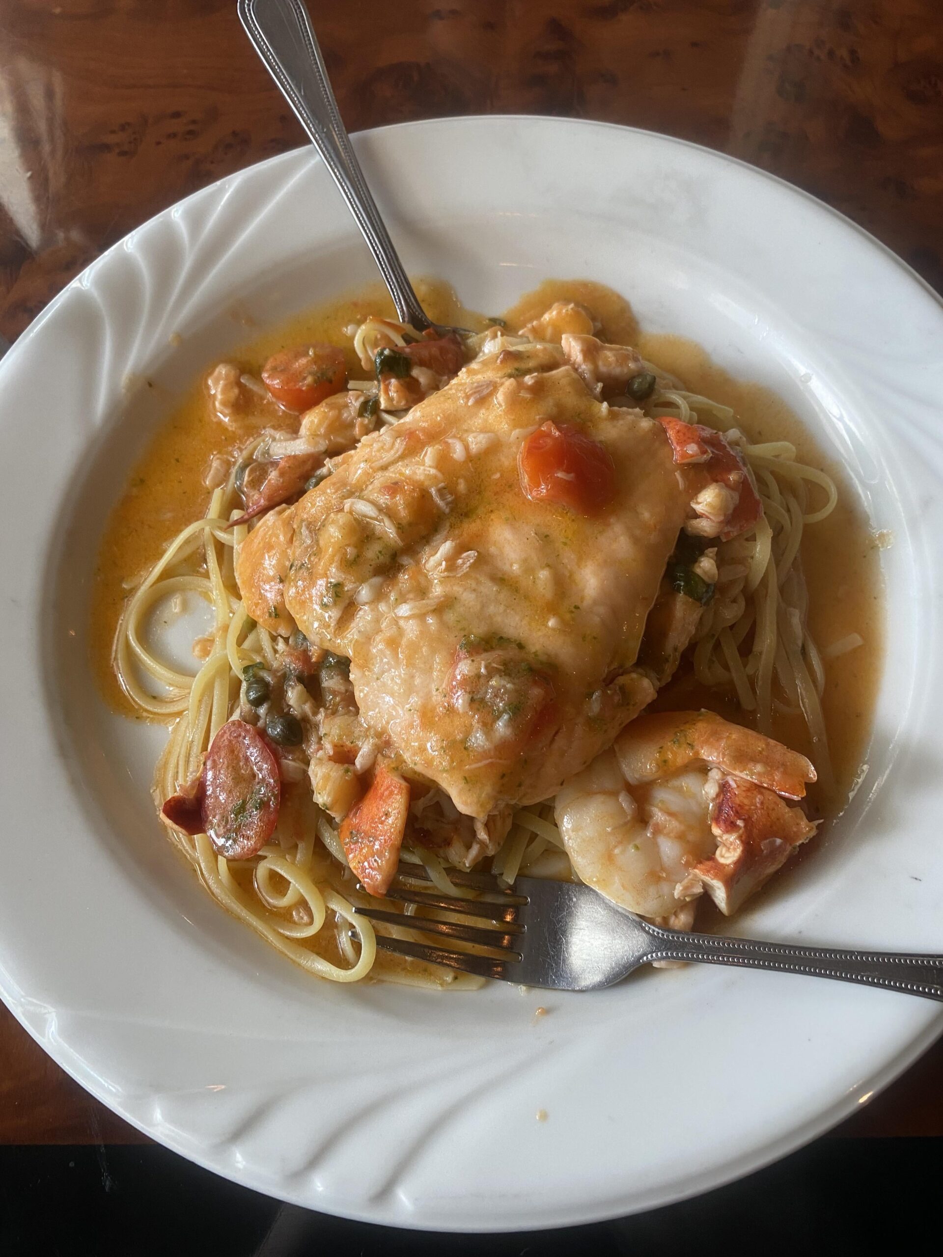Linguine in a cherry tomato pesto sauce with salmon, peas, jumbo shrimp by Dry-Metal4610 PastarestaurantWrite A CommentYou must be logged in to post a comment.