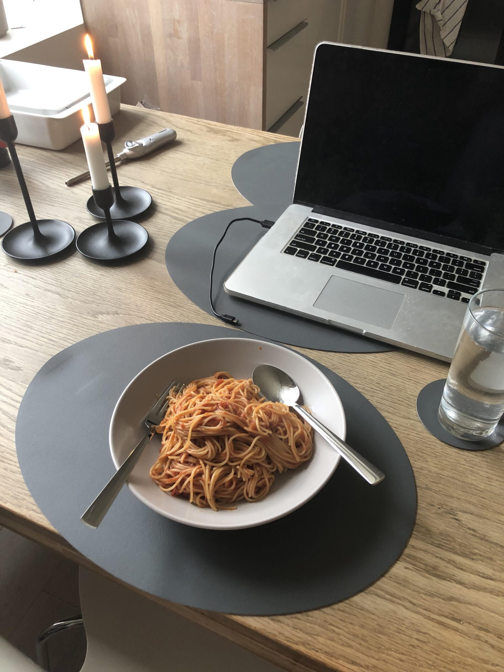 he uses spoon and fork to eat spaghetti
