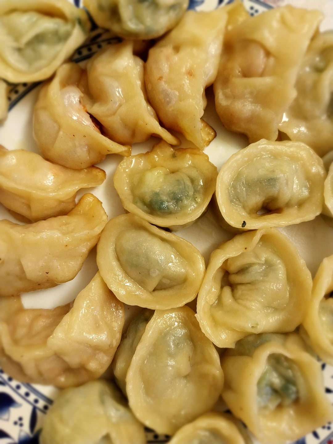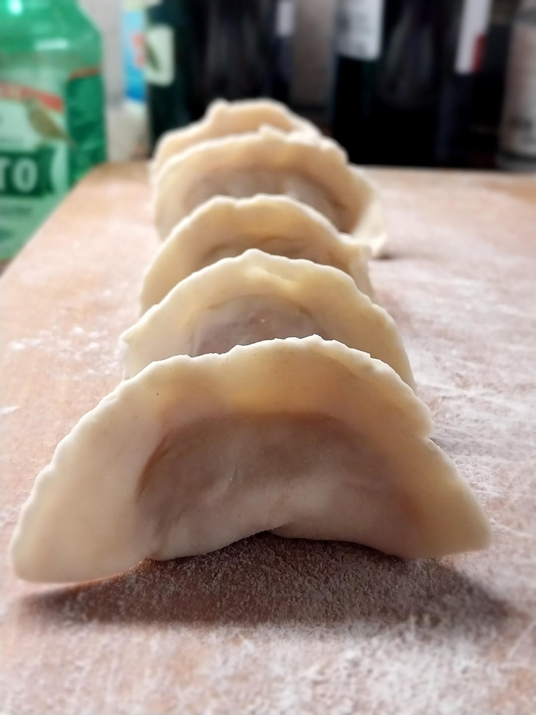 Wanted to share these dumplings I made a while ago, both meat and veggie filling, It's a recipe I experimented with so probably not traditional but still really good imo. I took inspiration from the chinese and Japanese cuisine and adapted the recipe☺️