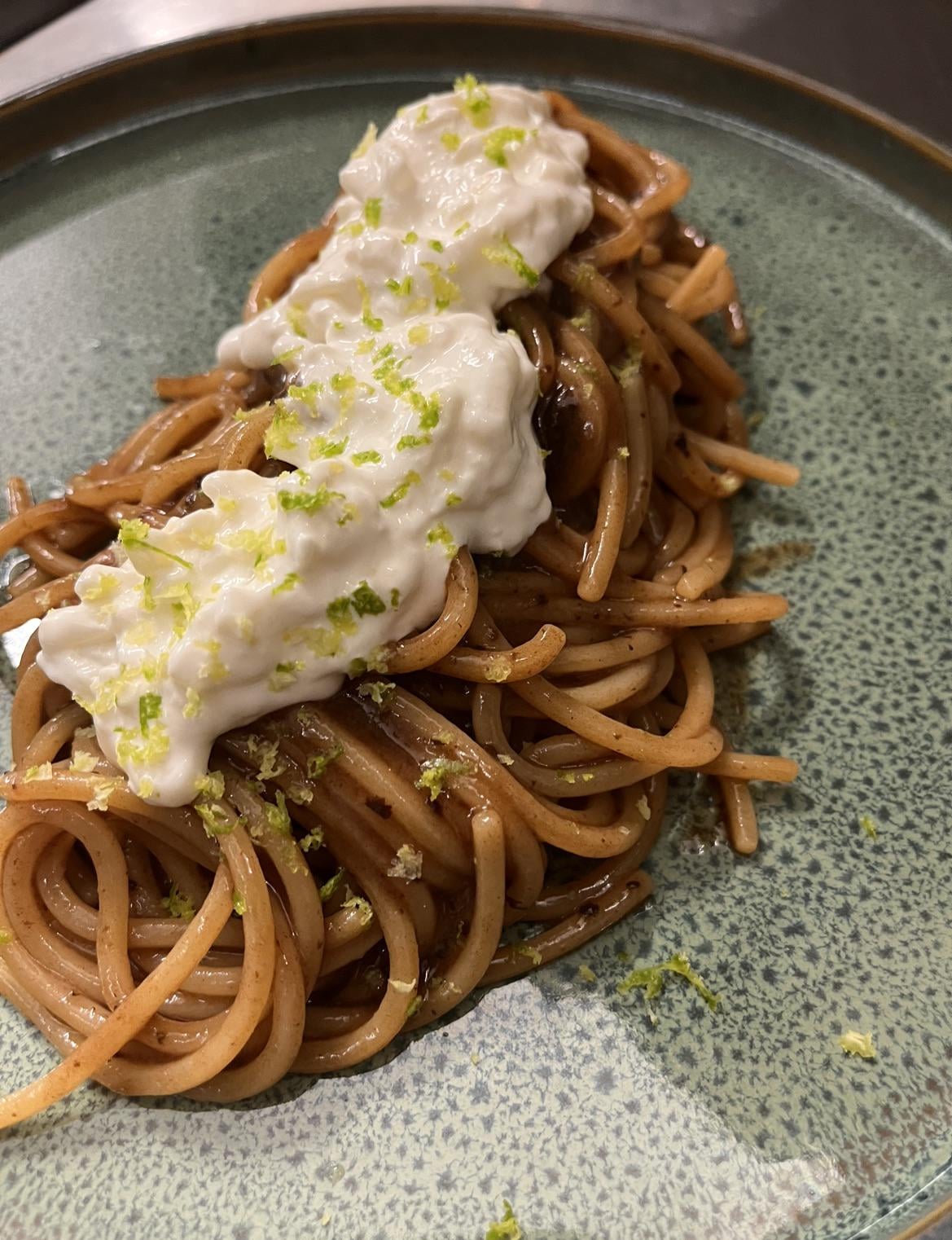 This is one of mine variant for the Italian Aglio Olio e peperoncino. An Black garlic, Habanero Chocolate and Olive oil sauce, with lime and fresh burrata.by Flimsy_Inspector_735 PastarestaurantWrite A CommentYou must be logged in to post a comment.