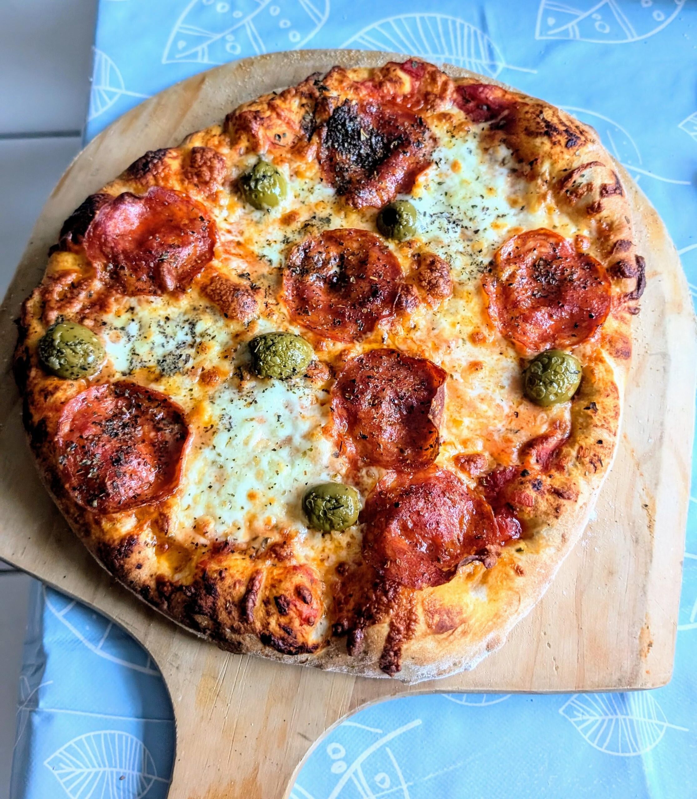 Changed flour to Matthews Cotswold Pizza Flour and the results were a massive improvement. Baked at 250°Celsius on a steel pizza/baking stone for about 9-10 minutes.