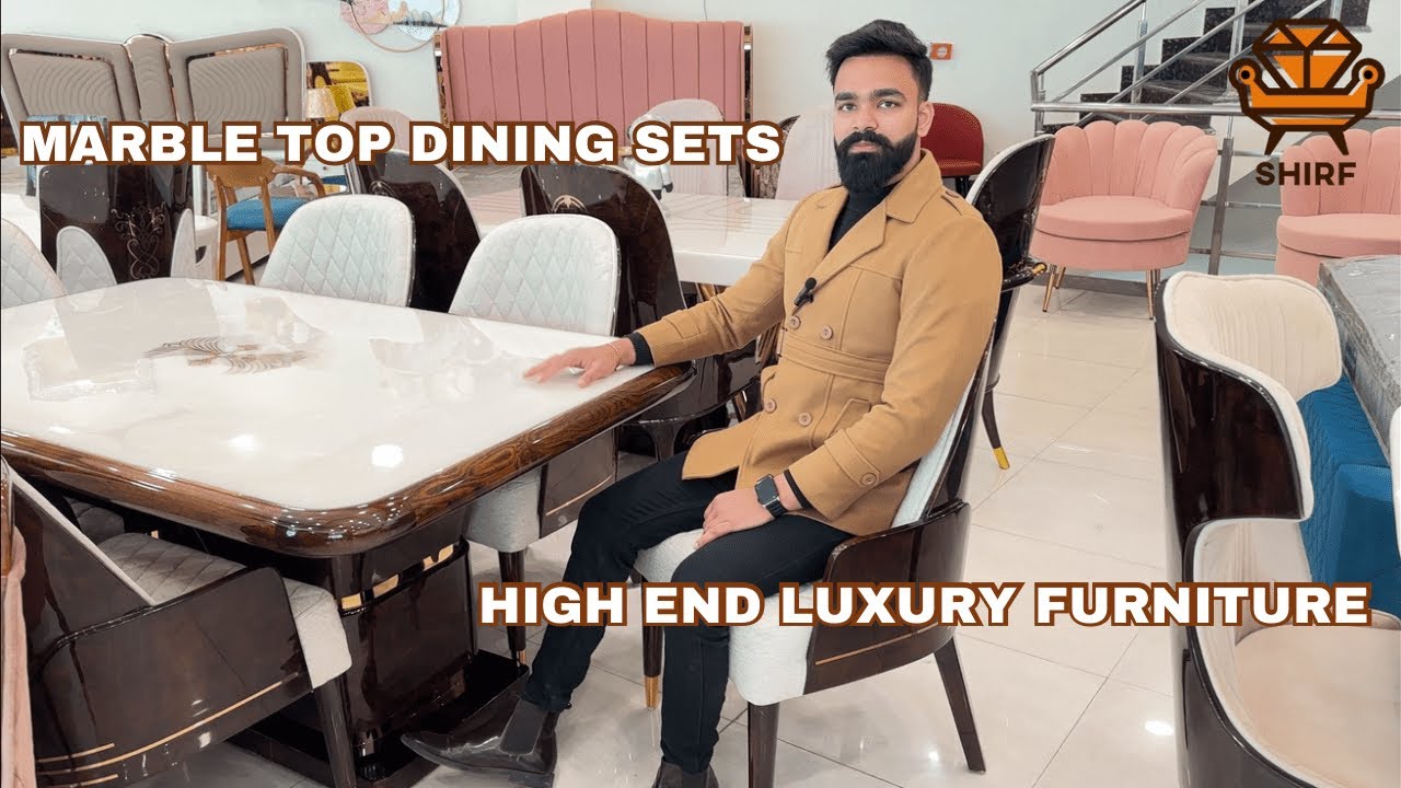 Marble Top Dining Sets At Very Affordable Prices. High End Luxury Furniture only at SHIRF. Onyx Marble Table and Italian Marble Table Tops.