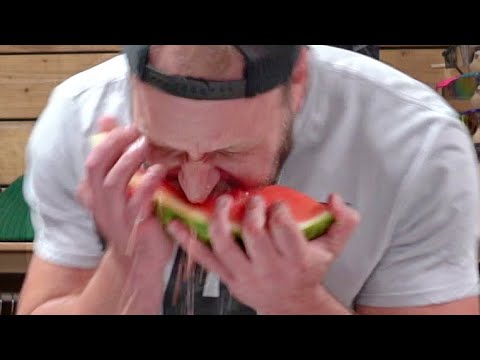 how to eat this watermelon in 1 second *(showing girls speed eating)