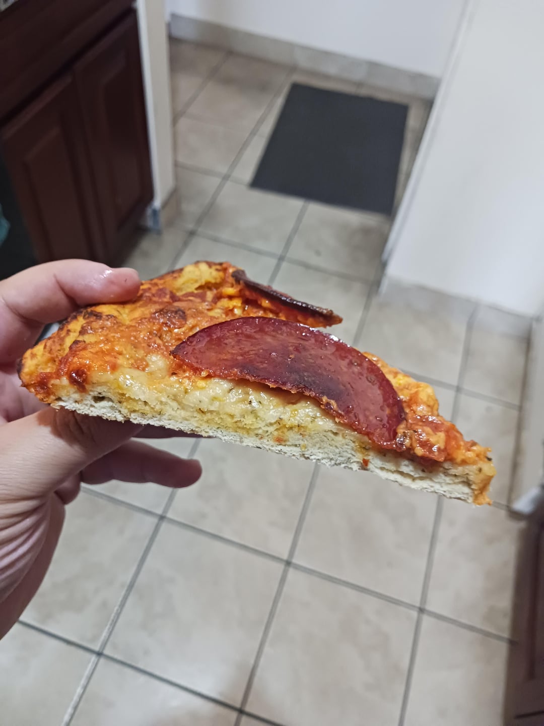Made the dough out of flour, honey, instant yeast, garlic, italian seasoning, and one egg. Let it rise over night. I dunno i feel like either i didn't put enough sauce & cheese, or i should have stretched it thinner, but i don't got a roller. I just did the pinchy thing.