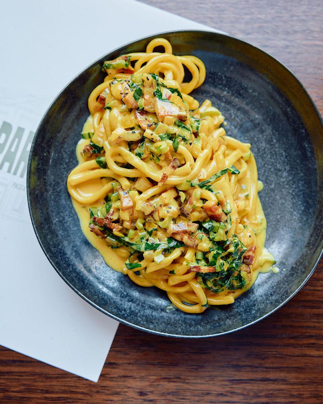 Bucatini with saffron and lemon cream