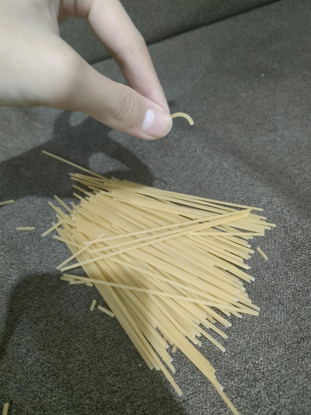 So basically my mom broke some spaghetti in half as we were cooking (IK the italian mafia is prolly after us rn), but when we picked up the little spaghetti pieces, I stumbled upon this bent pasta noodle. Like does this usually happen? I thought pasta was brittle how did this happen???