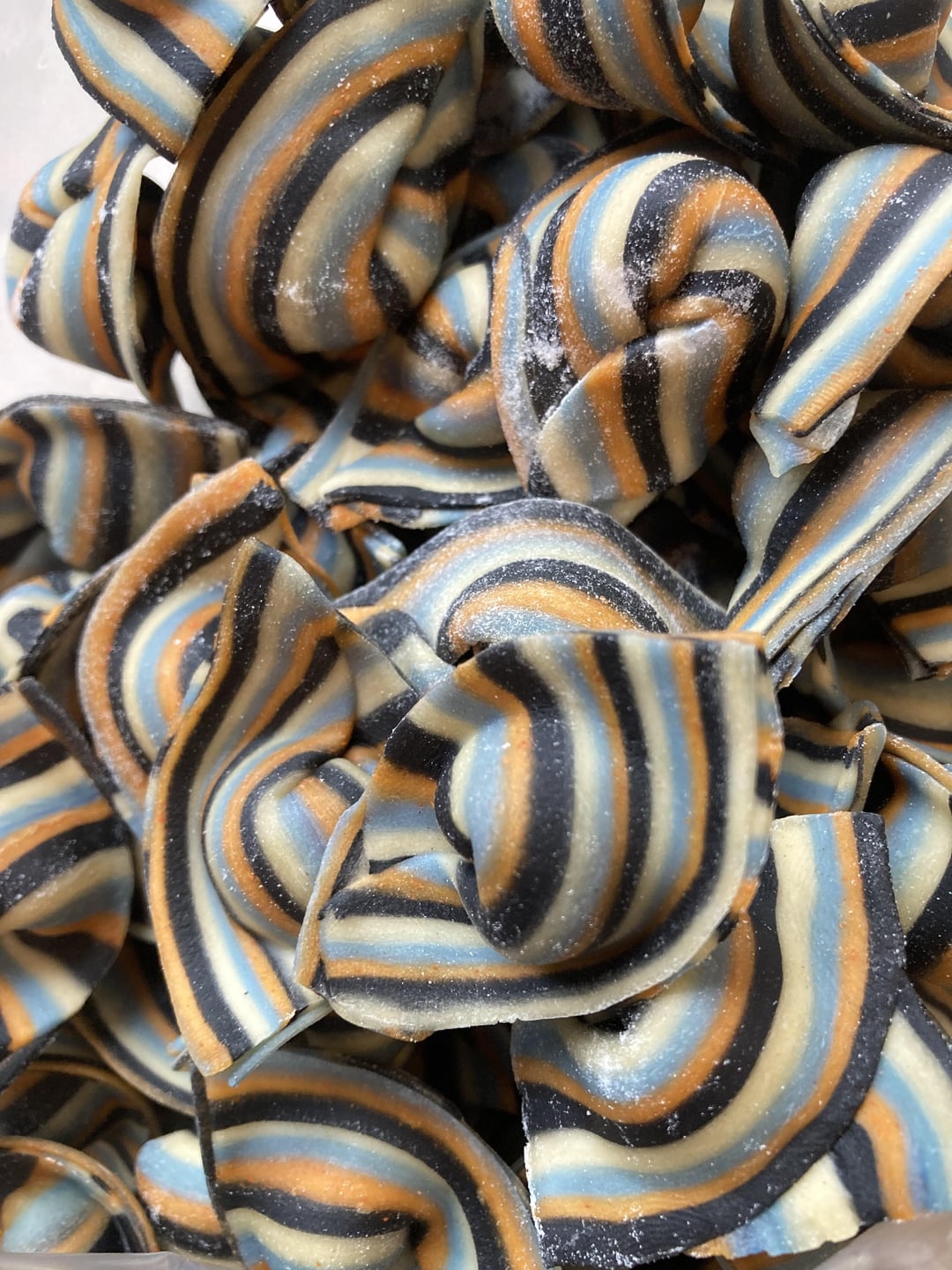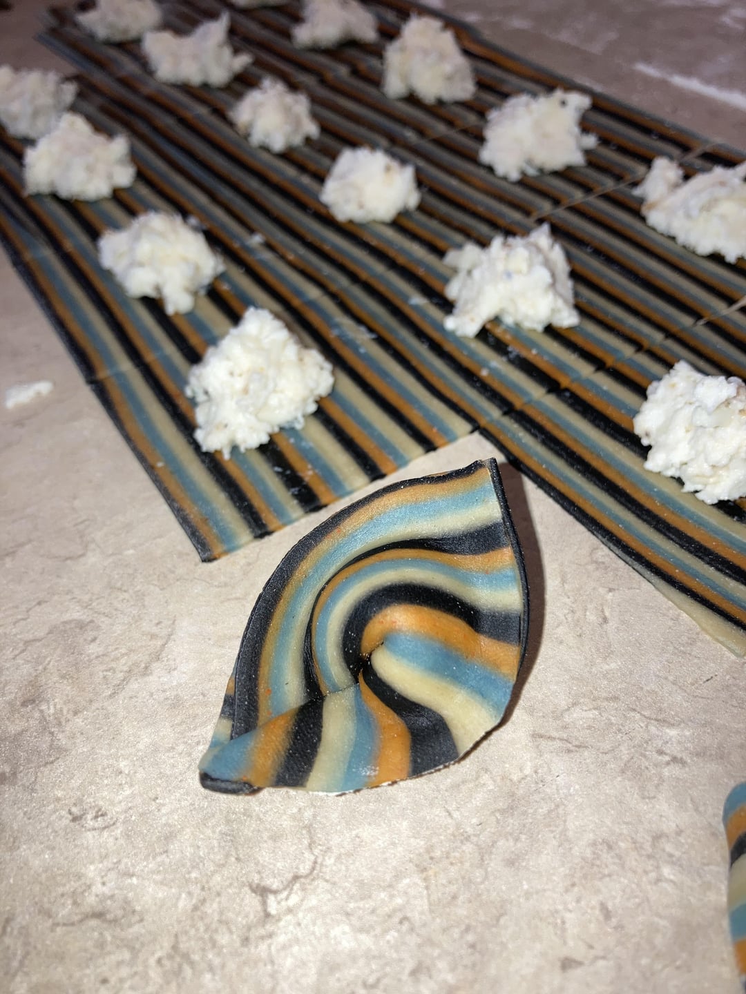 Standard 100g/1 egg. Replacing 3g flour for 3g spirulina/paprika/charcoal powder to achieve the colors. Filled with mozz, hand pressed ricotta, pecorino Romano, Asiago, parmigiana Reggiano, basil, sea salt, black peppercorn.by MemesSoldSeparately Pastapasta from scratchWrite A CommentYou must be logged in to post a comment.
