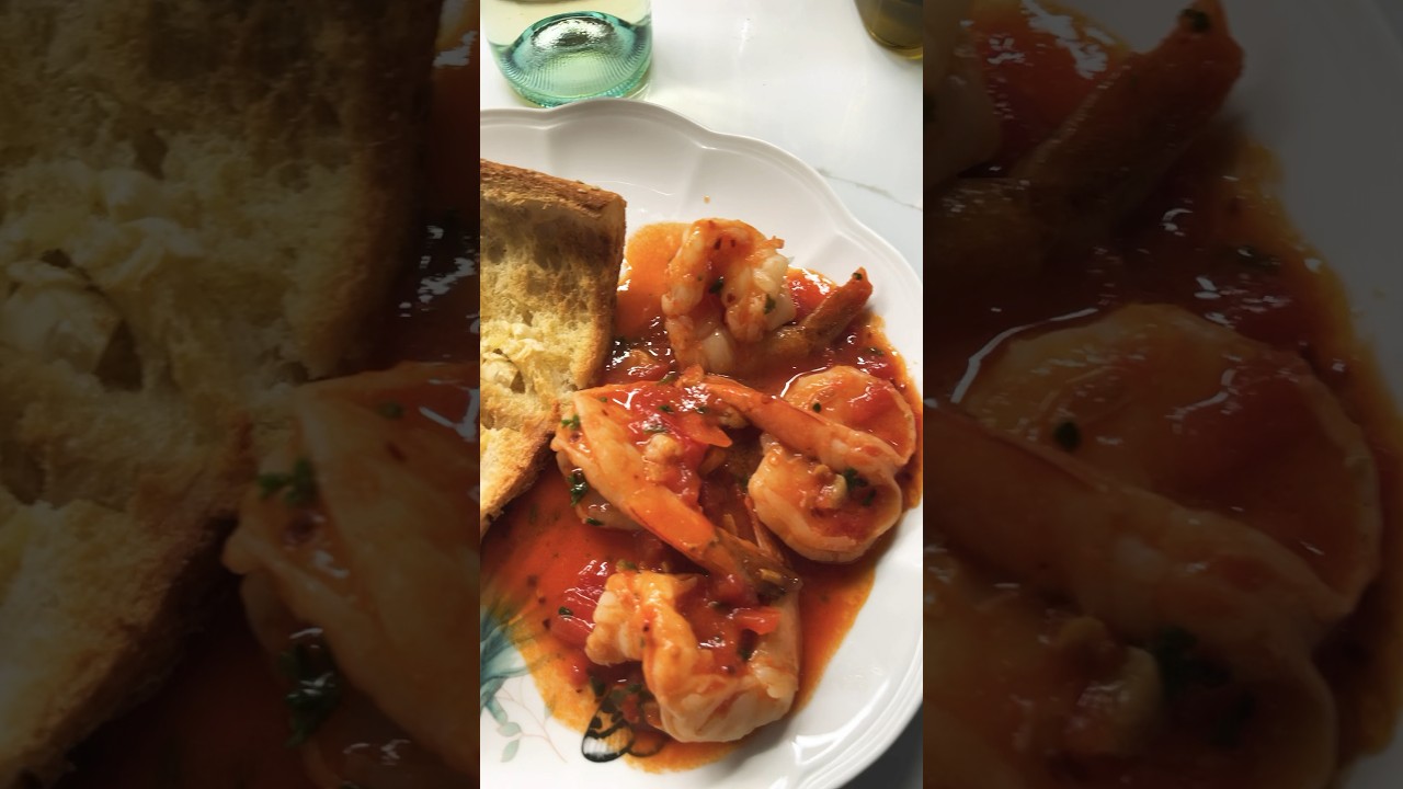 Shrimp and garlic bread, more heavenly than devilish, I think!