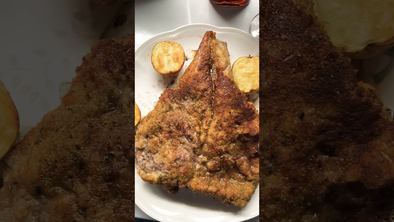 Pounded & butterflied, dredged in egg wash with grated Parm & fried in butter & olive oil, it’s a perfect meal👌