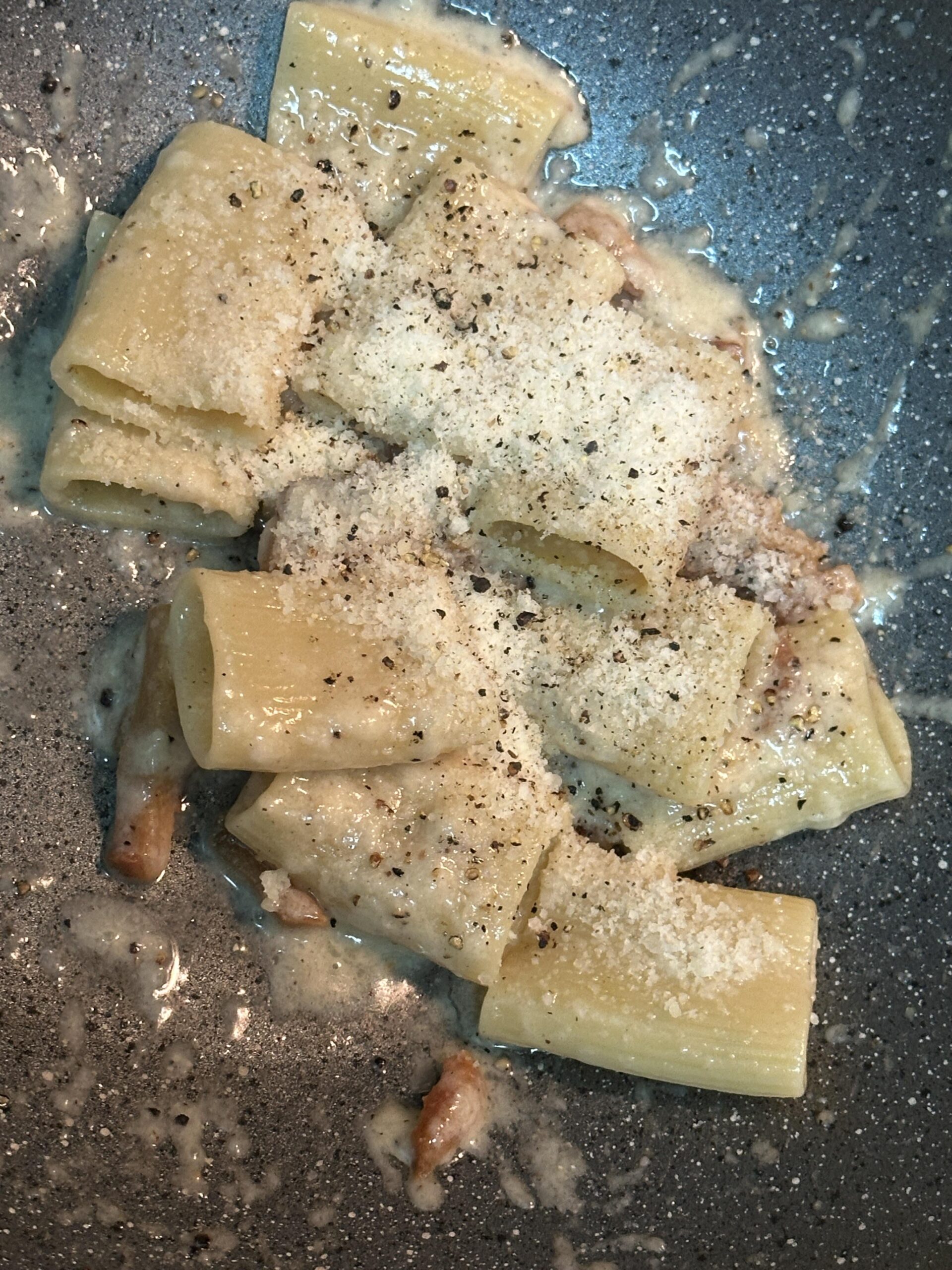 Guanciale pecorino black pepper it's that easy you already know the recipe Pasta is paccheri rigatiby pastel_orange Homemade DishPastaWrite A CommentYou must be logged in to post a comment.