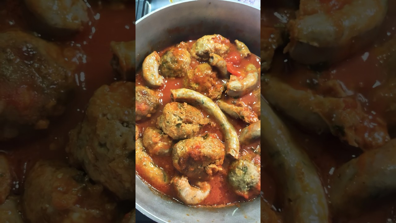 Sunday gravy without the pasta, an incredible salad and a delicious vegetable is all you really need 😃