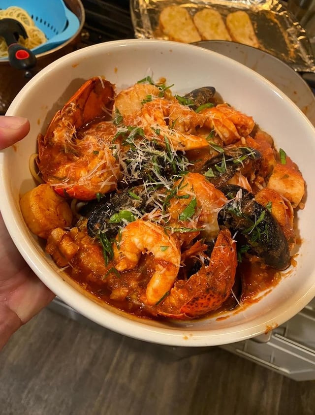 Cioppino over angel hair. Lobstah, clams, mussels, scallops and cod.by ded_head Homemade DishPastaWrite A CommentYou must be logged in to post a comment.