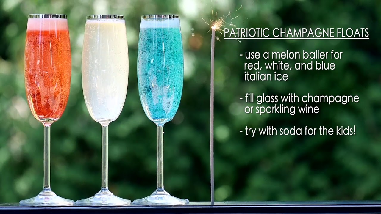 Raise your glasses for a toast this Independence Day with these Patriotic Champagne Floats! Use red, white, and blue Italian Ice and finish with champagne or sparkling wine to celebrate in style. Don’t forget about the kids— substitute with soda to include everyone in the fun!