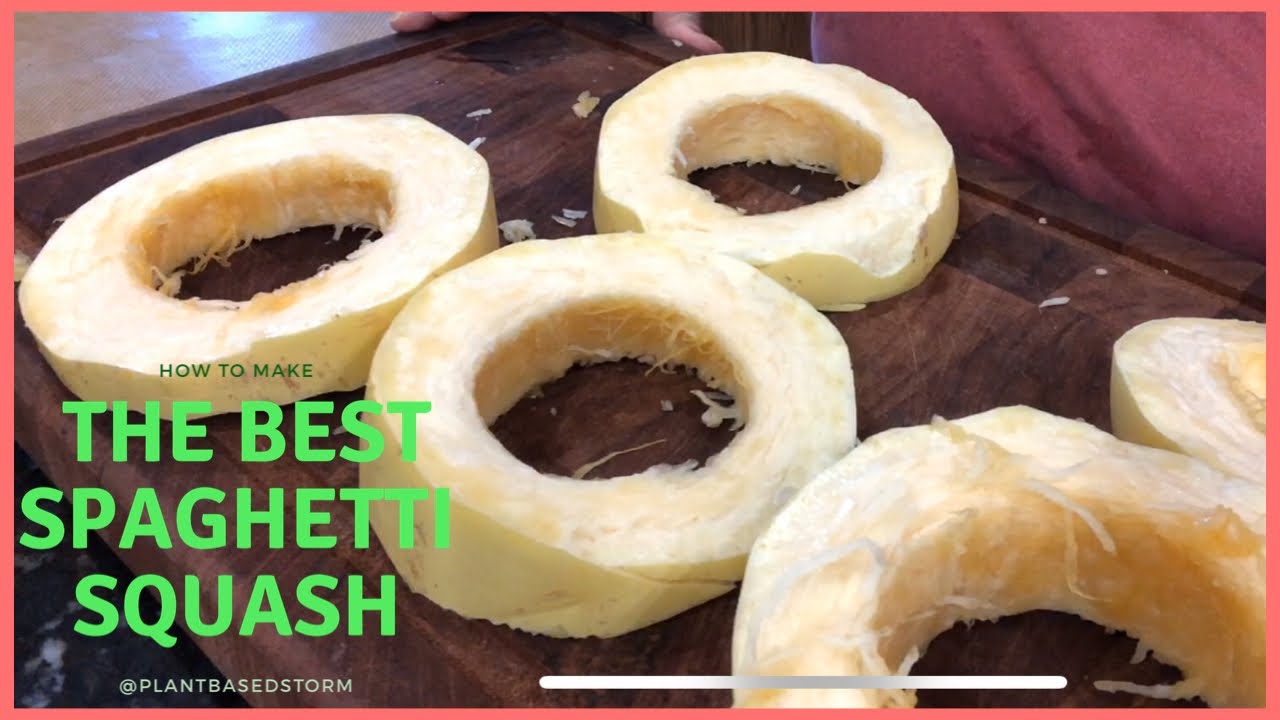 Cut spaghetti squash in half and then in to 1.5” rings. Lay flat on baking sheet cook 15 mins and flip and cook another 15 mins.
