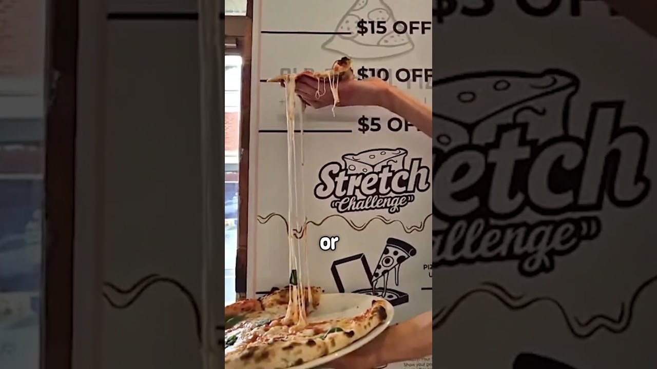The costumer gets the chance to get a discount or a free pizzaaaaa. If they can stretch the cheese enough to get it all the way to the top they get a free pizzaaaaaa