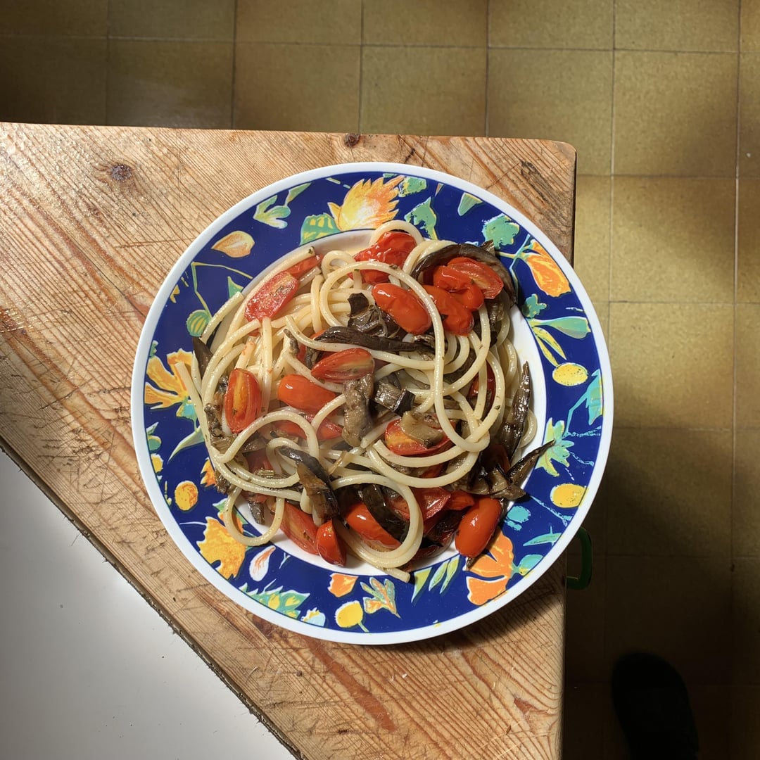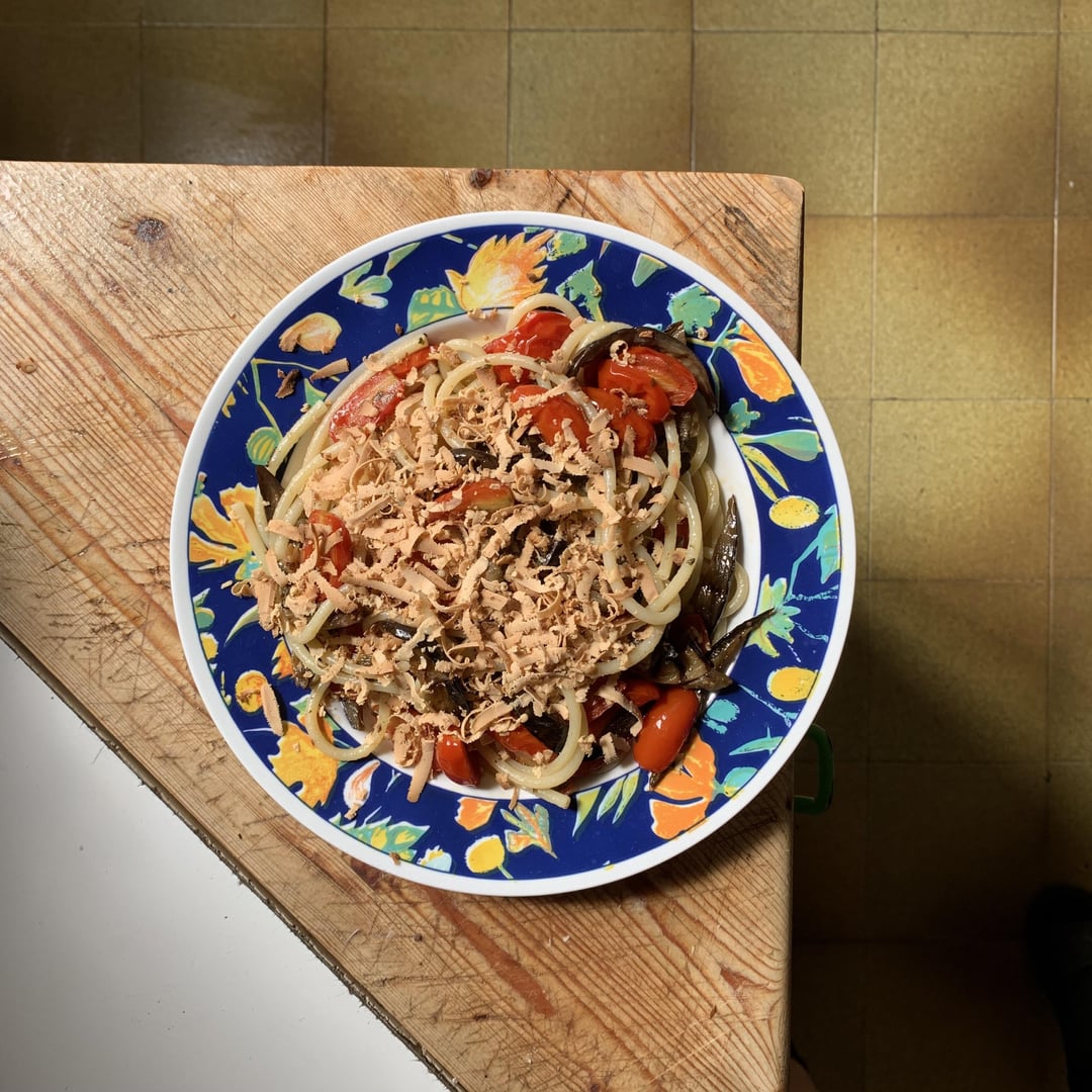Bucatini with grilled eggplants, pachino tomatoes and grated Sicilian ricotta al forno!