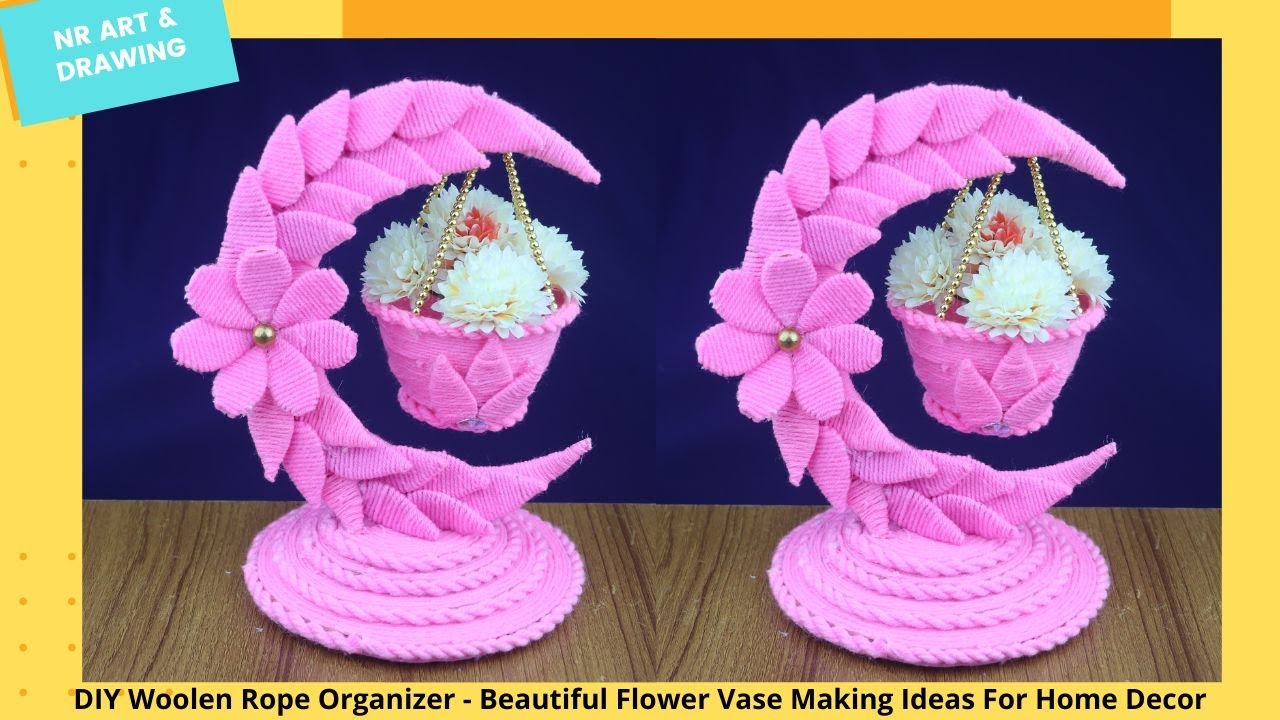 DIY Woolen Rope Organizer – Beautiful Flower Vase Making Ideas For Home Decor – Best out of waste