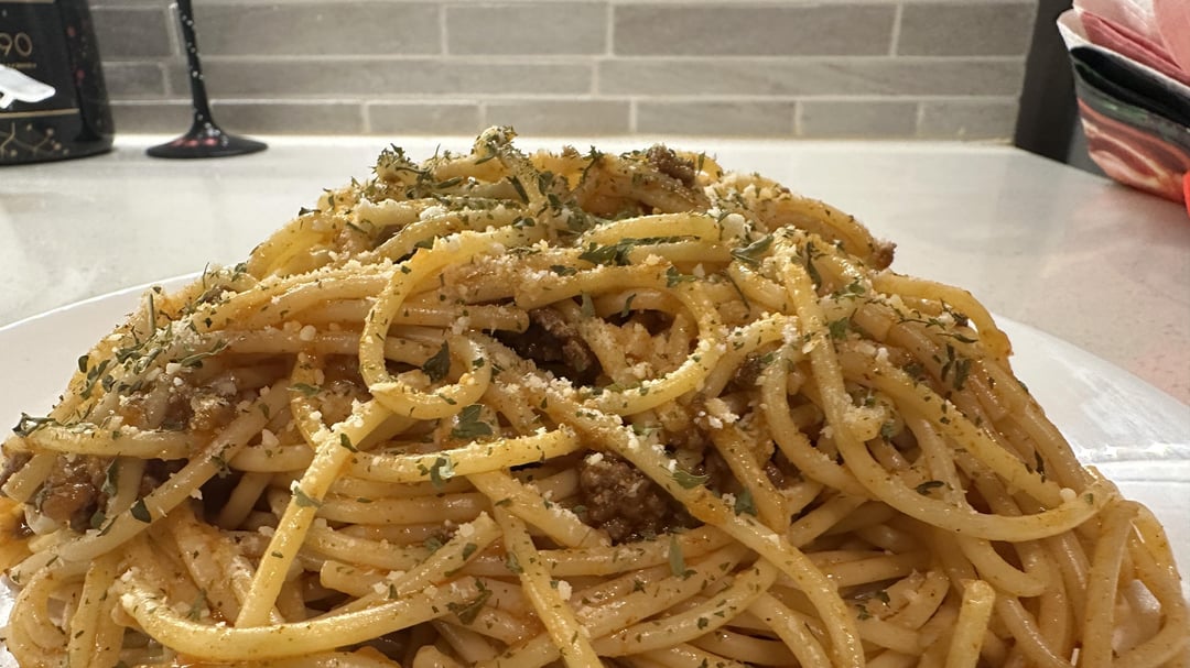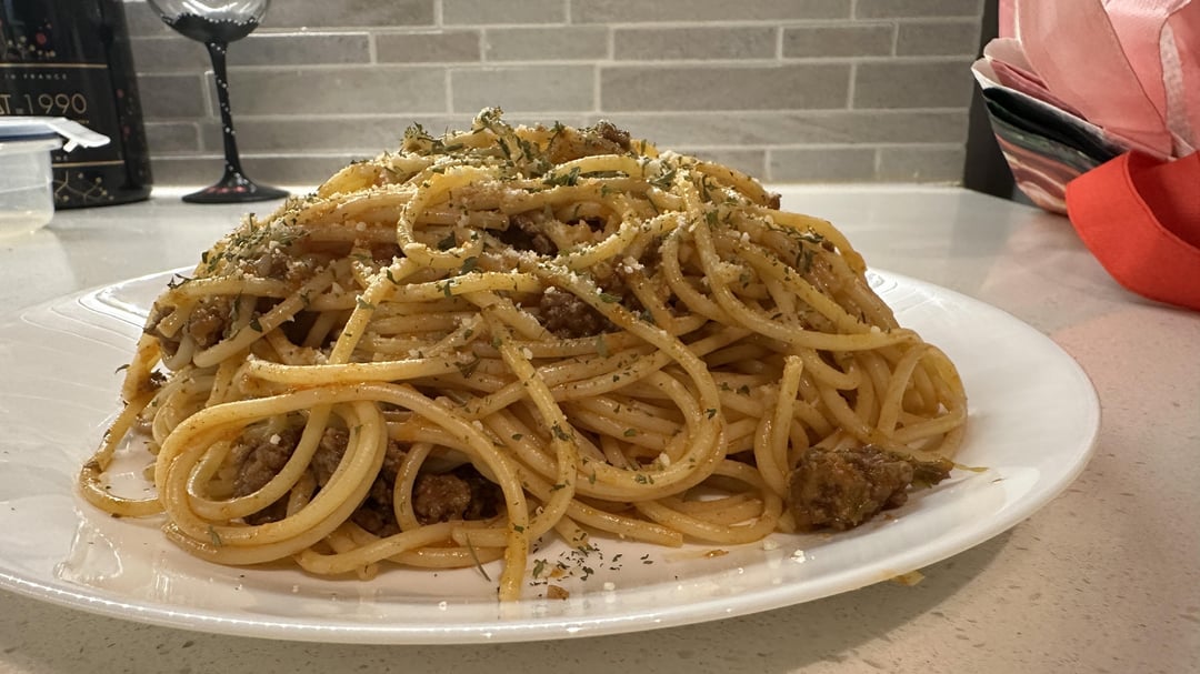 Store bought spaguetti. Home made sauce using ground beef, Roma tomatoes, garlic, tomato paste, ovoo, salt and pepper. Topped with paemesean cheese and oregano.by sir-chorizo Homemade DishPastaWrite A CommentYou must be logged in to post a comment.