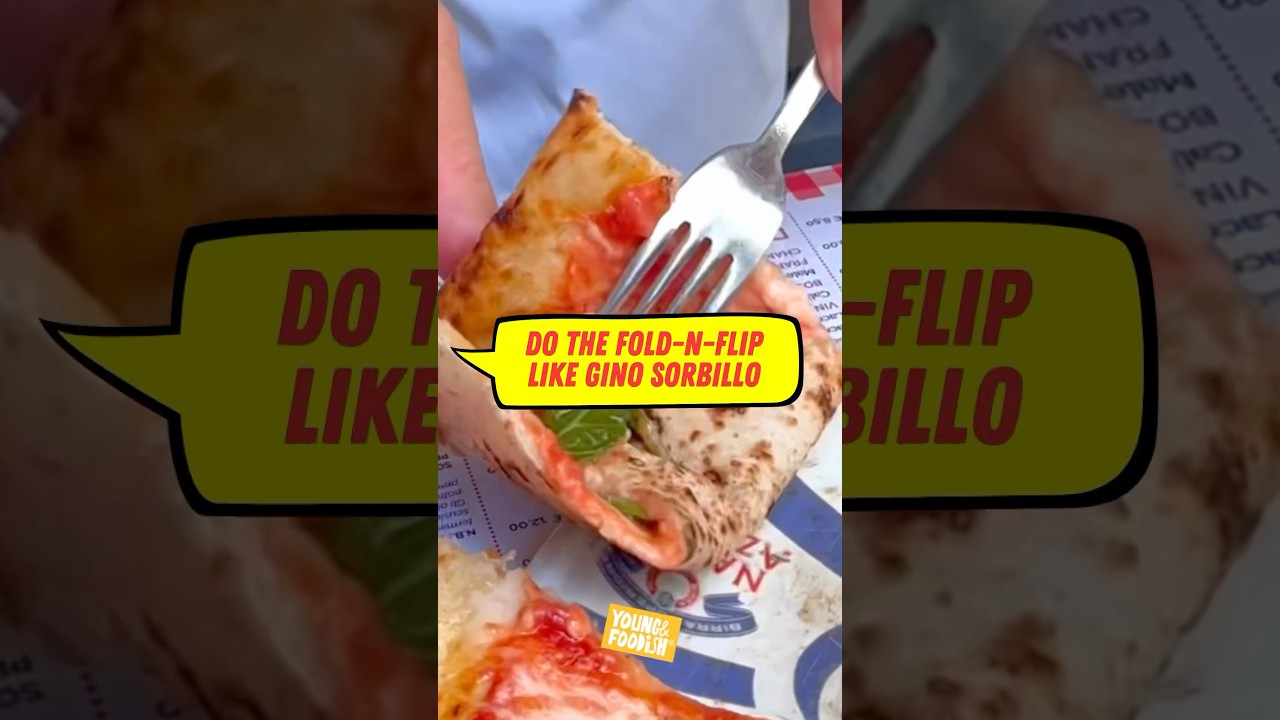 At Presepe Napoletano Pizzeria & Ostaria, pizza great Gino Sorbillo demonstrates the fold-n-flip. This is the preferred method in Naples for folding and enfolding a bendy, drippy slice of Neapolitan pizza.