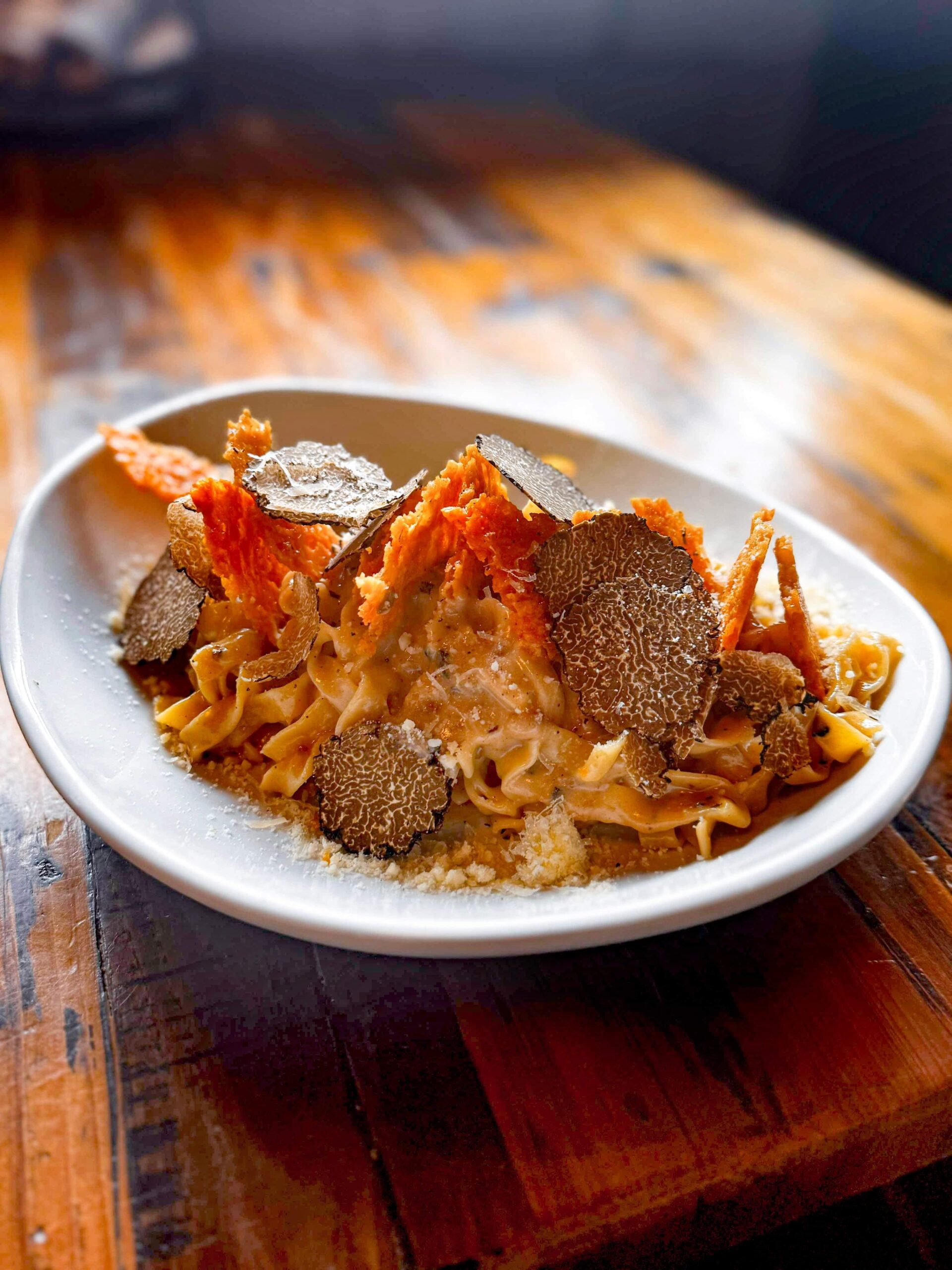 Extruded fettuccine, Parmesan crisps, black garlic truffle butter, and ofc black truffle shavings.by definitelynottwelve PastaprofessionalWrite A CommentYou must be logged in to post a comment.