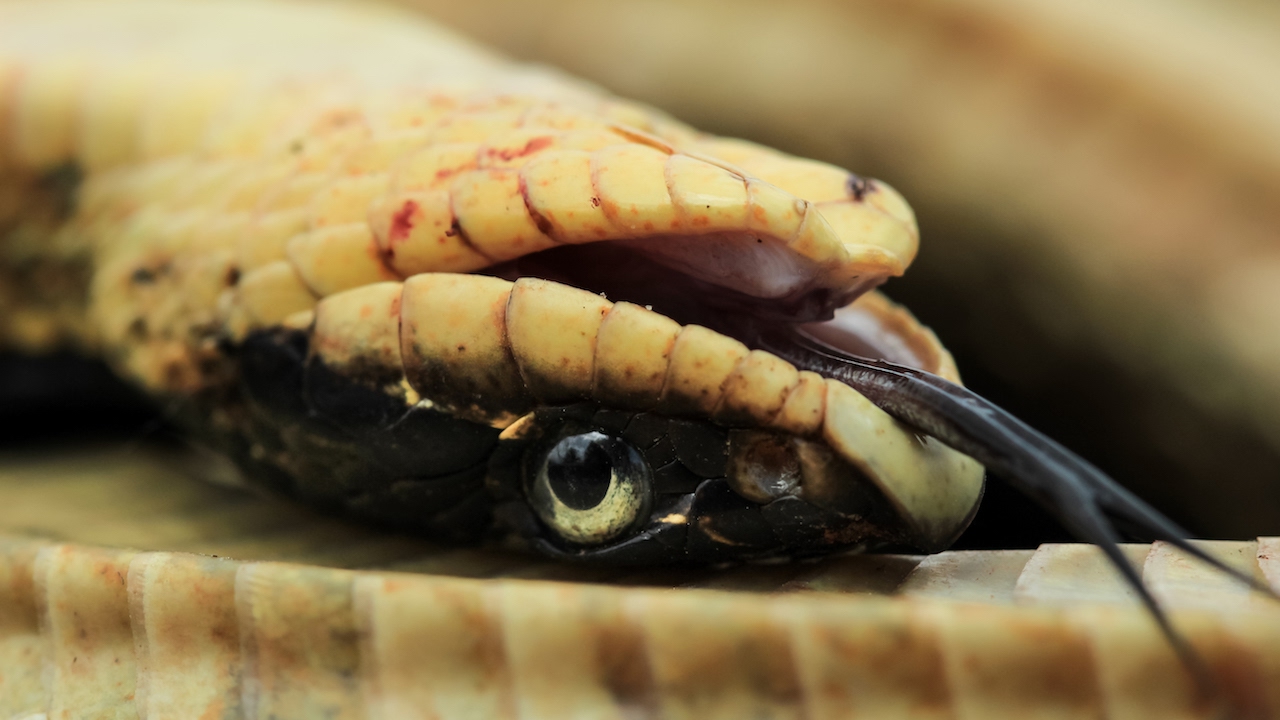 THIS snake has perfected a cunning way of deterring predators – by playing dead. With an Oscar-worthy performance, the Eastern Hognose writhes around as if in sheer pain, whilst also emitting a disgusting smell. The snake even hangs its fork tongue out of its mouth to ensure the dramatic scene is fully believable. Texan local, Kenneth Gisi, stumbled across the distinctive snake when it was being confronted by a feral cat.