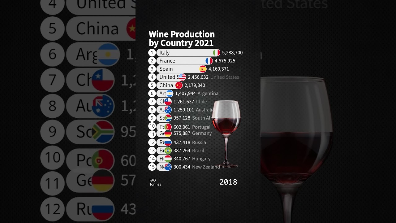 Wine production is an important agricultural industry worldwide, with several countries known for their significant contributions. Italy, France, and Spain are the leading wine-producing countries, each with distinct climates and rich viticulture histories. Italy is often the largest producer, with regions like Tuscany and Piedmont being renowned for their diverse wine varieties, such as Chianti and Barolo. France, known for its prestigious wine regions like Bordeaux, Burgundy, and Champagne, produces high-quality wines that are globally acclaimed. Spain, famous for regions like Rioja and Ribera del Duero, is known for producing robust reds and crisp whites.