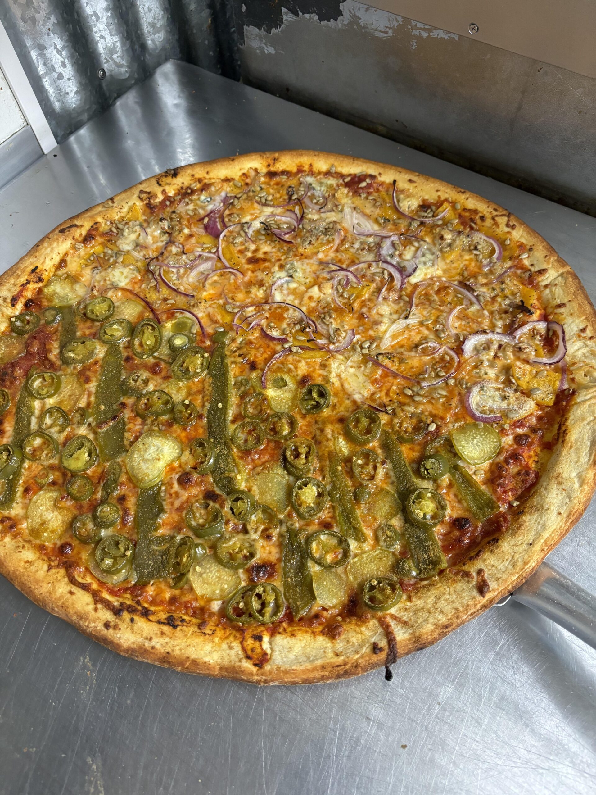 Left side: green chile/tomatillo/jalapeño/blue agave/cuminRight side: seasoned butternut squash/red onions/blue agave/sunflower seedsby GarugaMane pizzaTakeawayWrite A CommentYou must be logged in to post a comment.