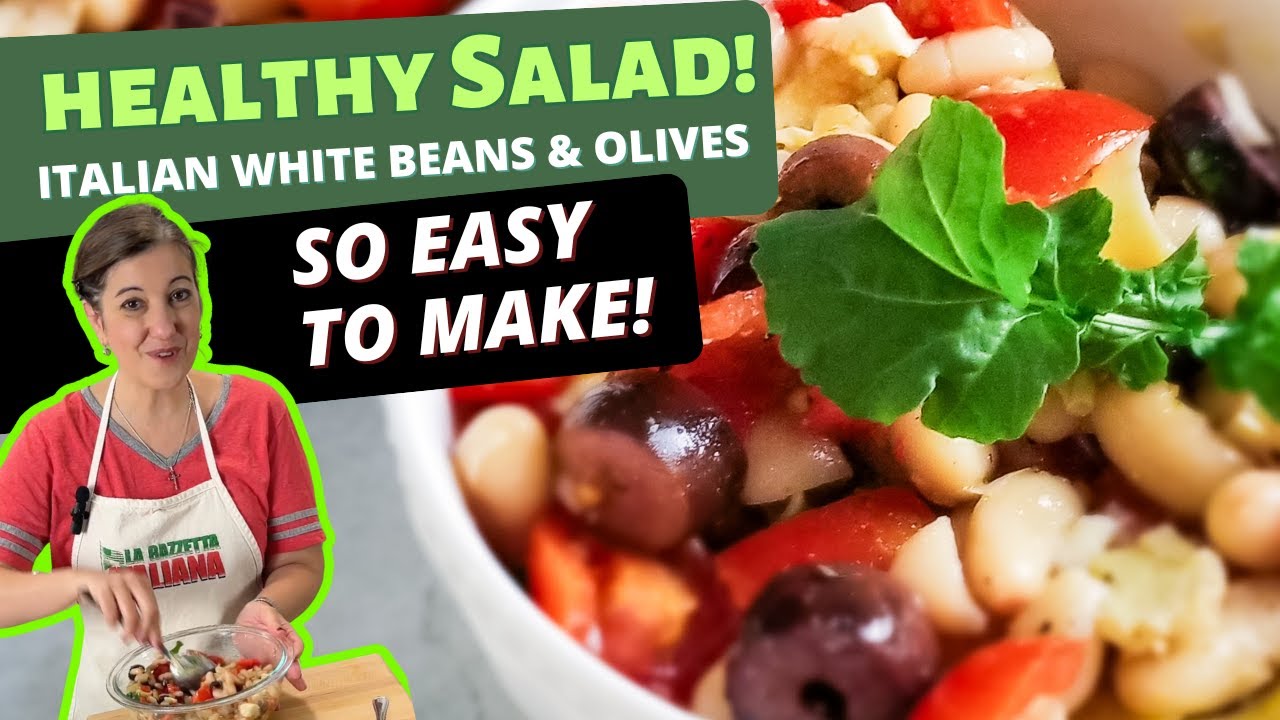In this video I’m showing you how to make one of my favorite Italian recipes for an Italian White Bean Salad. It uses Cannellini beans and kalamata olives and a lot of other Mediterranean ingredients.