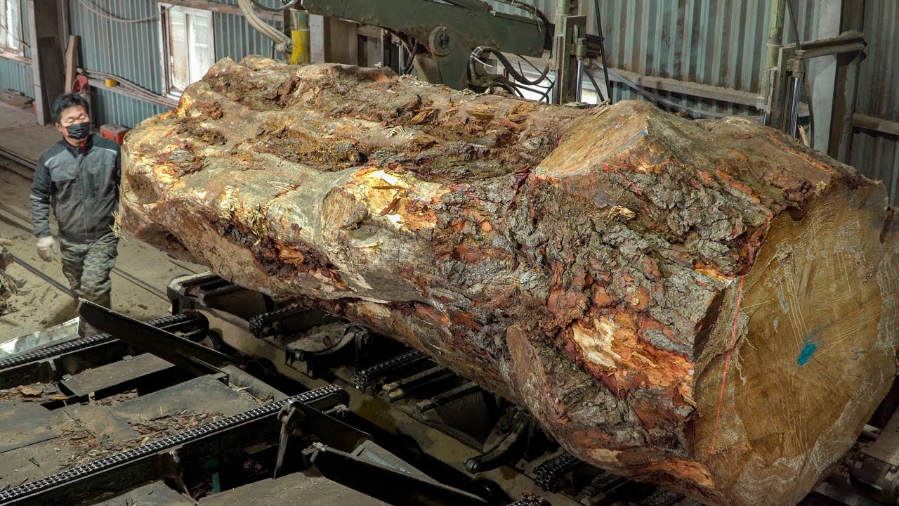 Turning a Giant Tree into an Expensive Dining Table. Korea’s Wooden Table Mass Production Process
