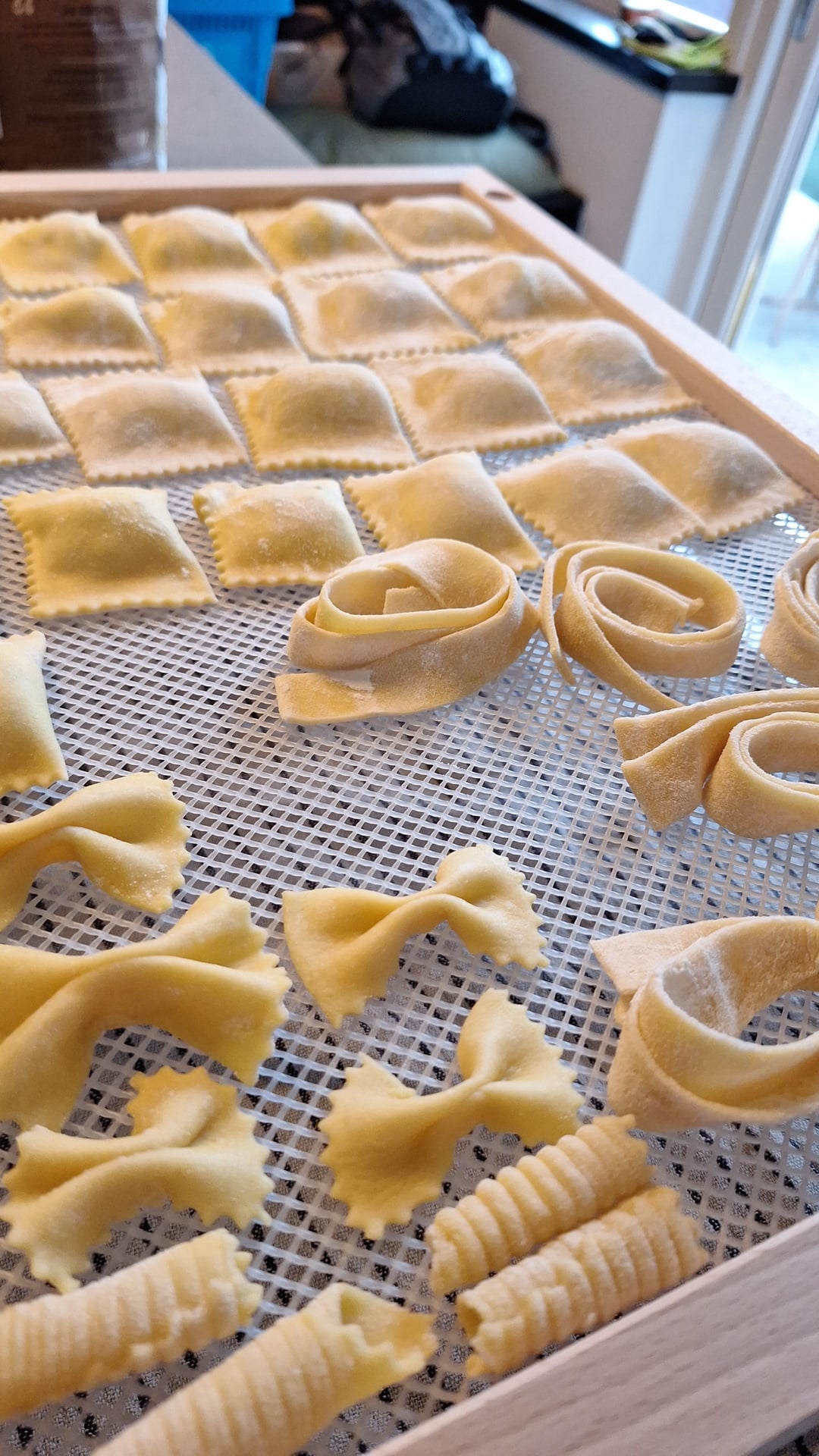 Pasta is Made with typo 00 flour, eggs and a splash of water.