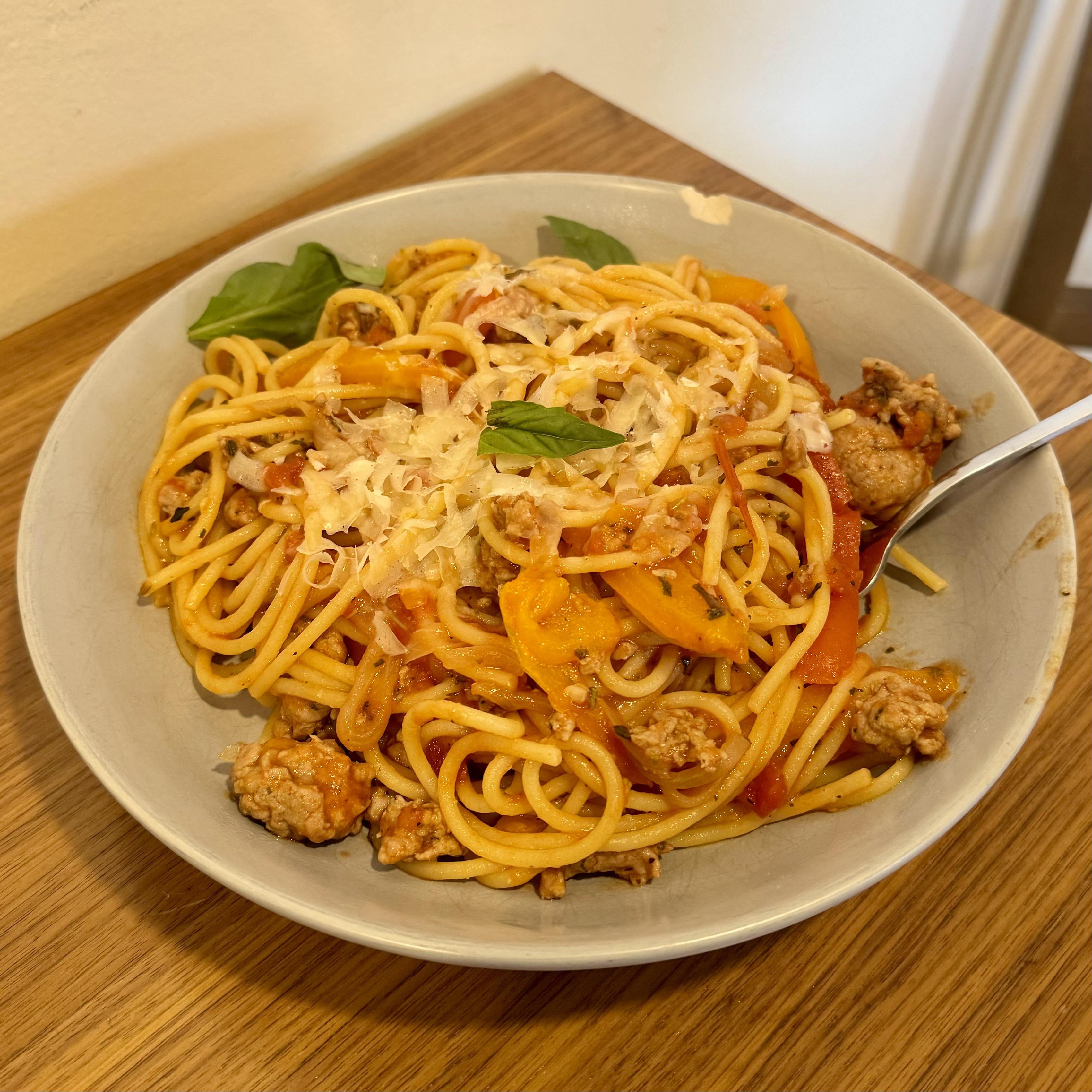 Spaghetti with sausage and peppersby ary31415 Homemade DishPastaWrite A CommentYou must be logged in to post a comment.