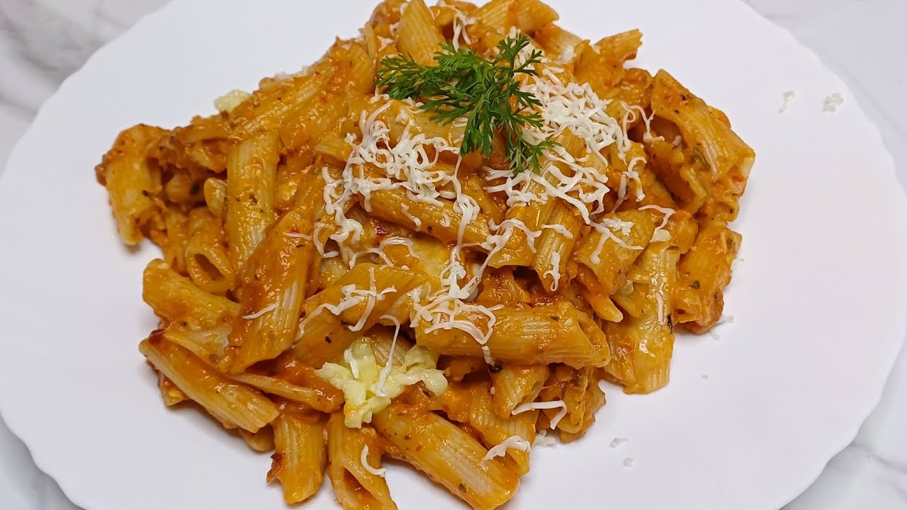 Red sauce pasta is a classic Italian dish, made with pasta cooked to al dente and tossed in a rich tomato-based sauce. The sauce is made from fresh or canned tomatoes, garlic, onions, and olive oil, simmered together until it reaches a flavorful consistency. The dish is seasoned with herbs like basil, oregano, and red chili flakes for a bit of heat. Some recipes also include bell peppers or mushrooms for added texture. The pasta is then garnished with grated Parmesan cheese and fresh herbs like parsley or basil, giving it a vibrant finish.