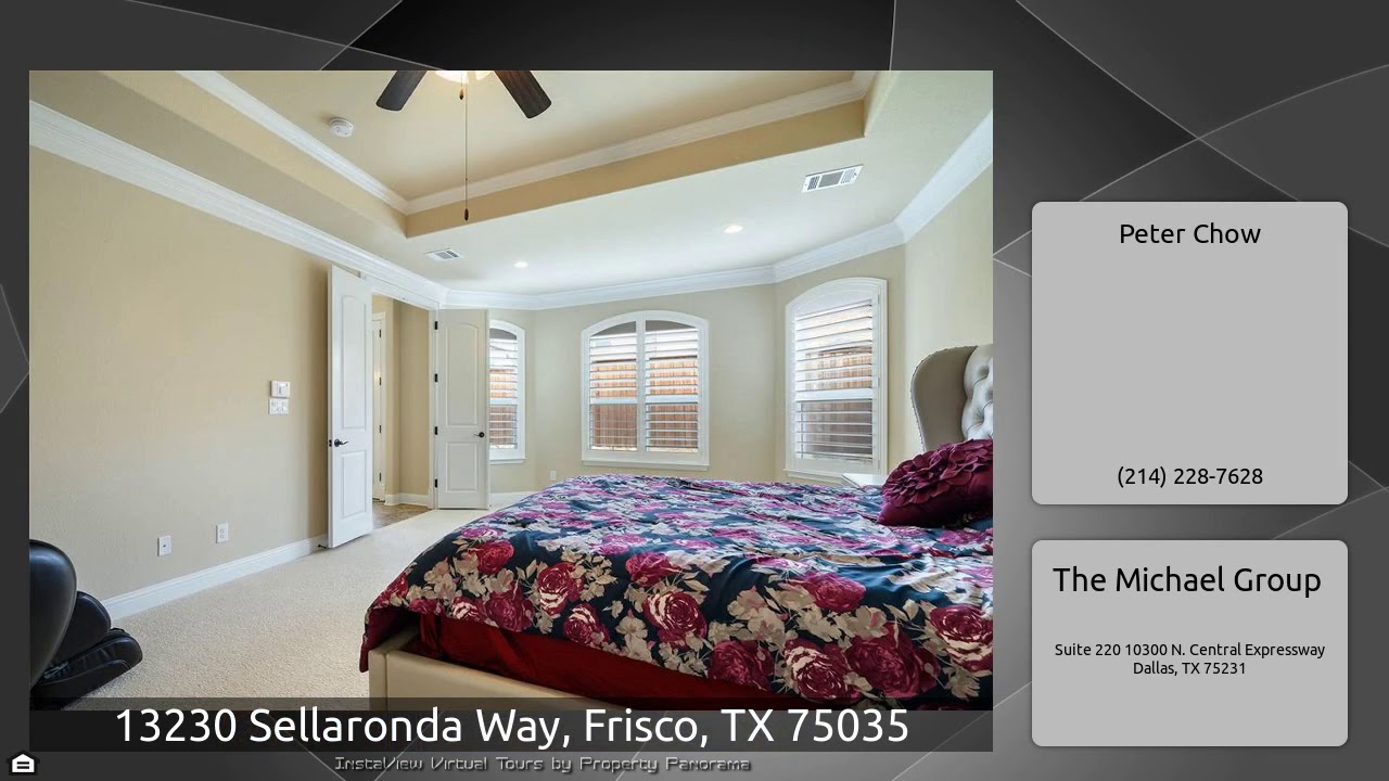 The Virtual Tour for the property at 13230 Sellaronda Way, Frisco, TX 75035 listed for $4,000: Other homes for sale by Peter Chow of The Michael Group: This beautiful Mediterranean home has the same floor plan as the Toll Brothers best selling model. Extensive solid wood floors, upgraded cabinets, bookshelves, drapes and plantation shutter throughout the house. Bonus room next to the Study conveniently locates downstairs. The oversized kitchen features granite counter, Island, stainless steel appliance, commercial grade cooktop is between the breakfast nook and formal dining room. Family …