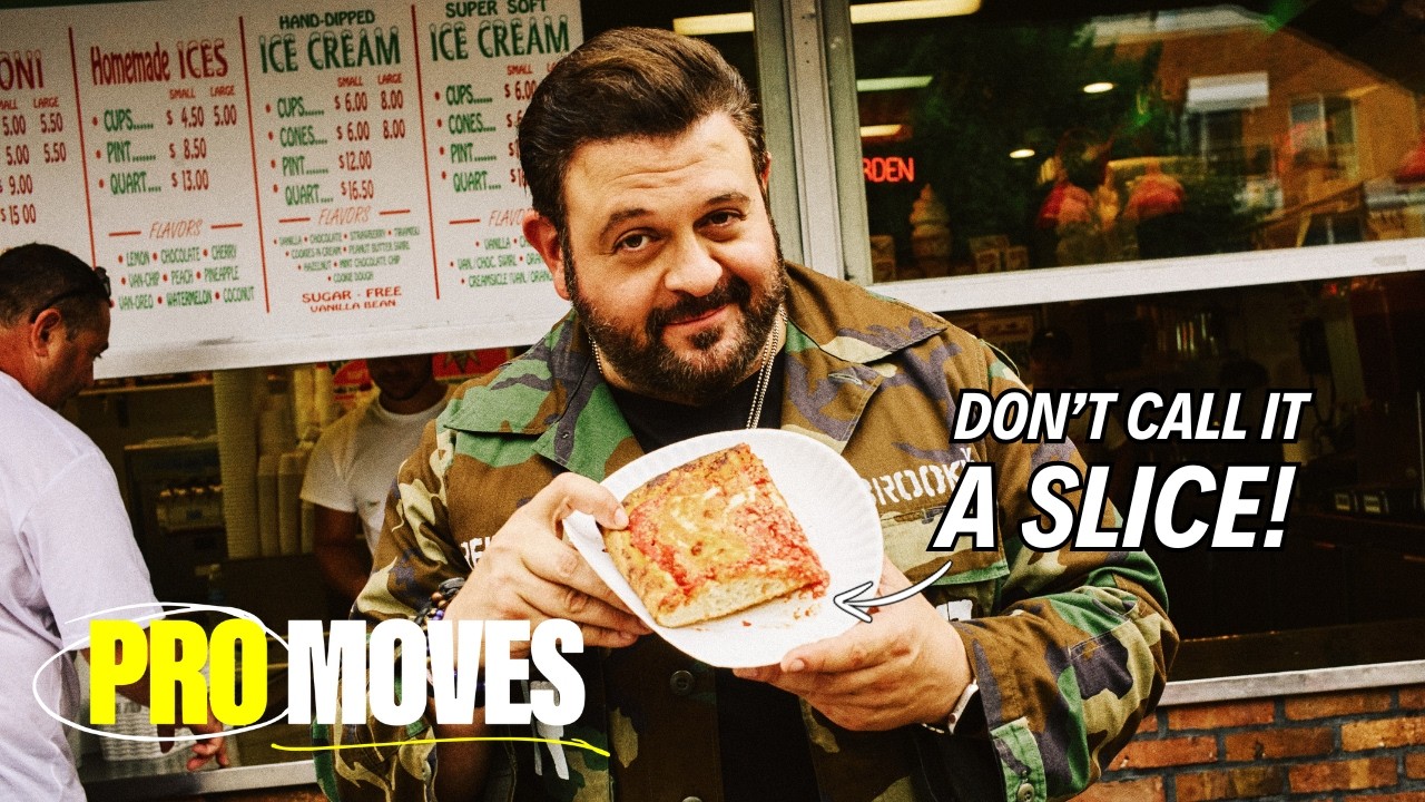 In the series premiere of Pro Moves, host Adam Richman is on a mission to explore NYC’s legendary pizza scene. From the classic slice to the square Sicilian, Adam is eating his way through New York’s most iconic pizza styles, and giving you—the viewer!—the expert tips, tricks, and insider information needed to pick out the best pie no matter where you are. To help Adam on his quest, he’s teaming up with some of the city’s foremost pizza experts: self-professed pizza nerd Scott Wiener and Best Pizza’s Frank Pinello. Along with Frank and Scott, Adam will eat his way through four legendary pizzerias—from Luigi’s Pizza and L&B Spumoni Gardens in Brooklyn, to John’s of Bleecker Street and Una Pizza Napoletana in Manhattan.