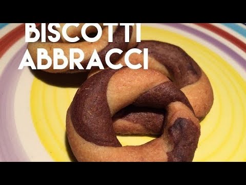 “Biscotti Abbracci” are a beloved Italian treat, especially popular for their contrasting flavors and shapes. These cookies, made by the skilled hands of Italian pastry chefs, feature two distinct doughs: one rich and dark, made with cocoa, and the other lighter, made with vanilla. The two doughs are gently twisted together to create a “hug” (hence the name “abbracci”, meaning “embraces”), forming a deliciously soft yet slightly crisp biscuit.